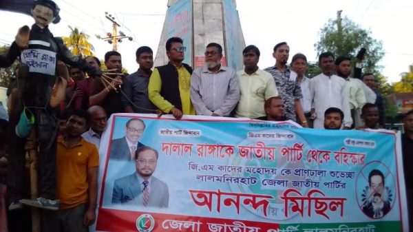 জাতীয় পার্টির সদ্য পদ হারানো ও বহিষ্কৃত নেতা মশিউর রহমান রাঙ্গার কুশপুত্তলীকা দাহ ও তাকে বহিষ্কার করায় নেতাকর্মীদের মাঝে মিষ্টি বিতরণ করেছে লালমনিরহাট জেলা জাতীয় পার্টি।