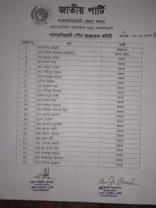 উক্ত কমিটিতে আলমগীর চৌধুরীকে আহবায়ক ও লালমনিরহাট পৌরসভার ৯নং ওয়ার্ডের কাউন্সিলর রবিউল ইসলাম আউয়ালকে সদস্য সচিব করে ২৫সদস্য বিশিষ্ট জাতীয় পার্টি লালমনিরহাট পৌর কমিটির ঘোষণা করা হয়।