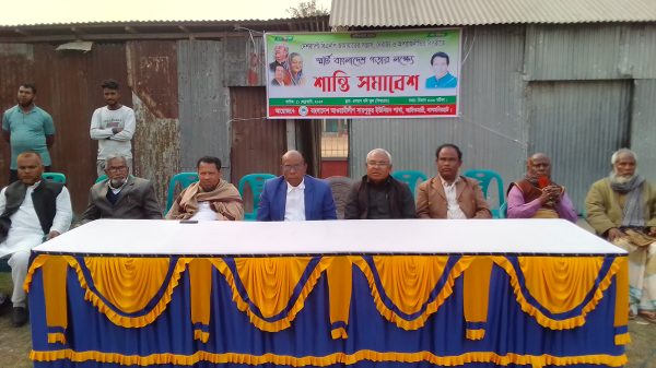 শনিবার (১১ ফেব্রুয়ারি) বিকাল ৩টায় লালমনিরহাটের আদিতমারী উপজেলার সারপুকুর ইউনিয়নের বিশ্বরোডস্থ ওসমান গণি স্কুলে বাংলাদেশ আওয়ামী লীগ সারপুকুর ইউনিয়ন শাখার আয়োজনে এ শান্তি সমাবেশ অনুষ্ঠিত হয়।
