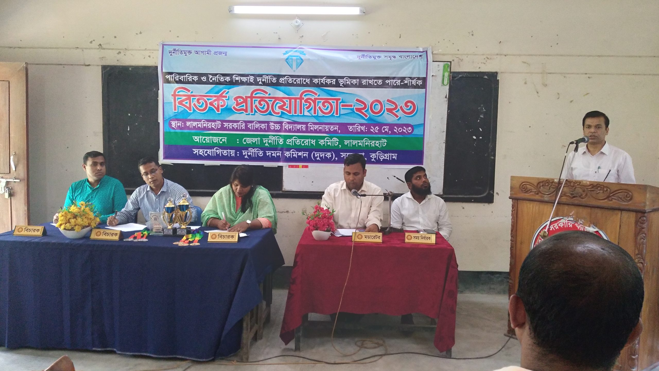 বৃহস্পতিবার (২৫ মে) দুপুর ১২টা ৩০মিনিটে লালমনিরহাট সরকারি বালিকা উচ্চ বিদ্যালয় মিলনায়তনে লালমনিরহাট জেলা দুর্নীতি প্রতিরোধ কমিটির আয়োজনে কুড়িগ্রাম দুর্নীতি দমন কমিশন (দুদক) সজেকার সহযোগিতায় এ বিতর্ক প্রতিযোগিতা-২০২৩ অনুষ্ঠান অনুষ্ঠিত হয়।