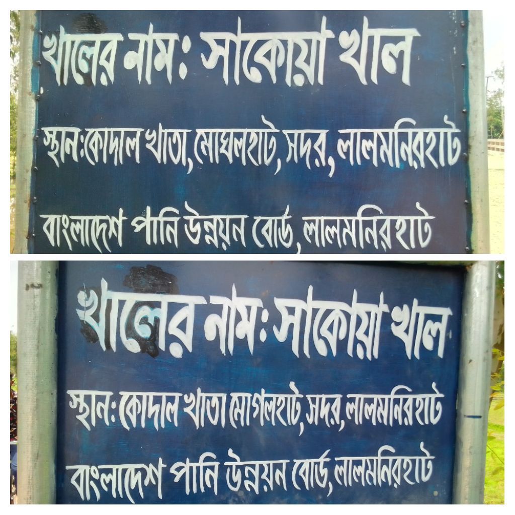 এমন সাইনবোর্ডটি লালমনিরহাট জেলার লালমনিরহাট সদর উপজেলার মোগলহাট ইউনিয়নের কোদালখাতা এলাকায় "সাকোয়া খাল" এর সামনে ঝোলানো আছে।