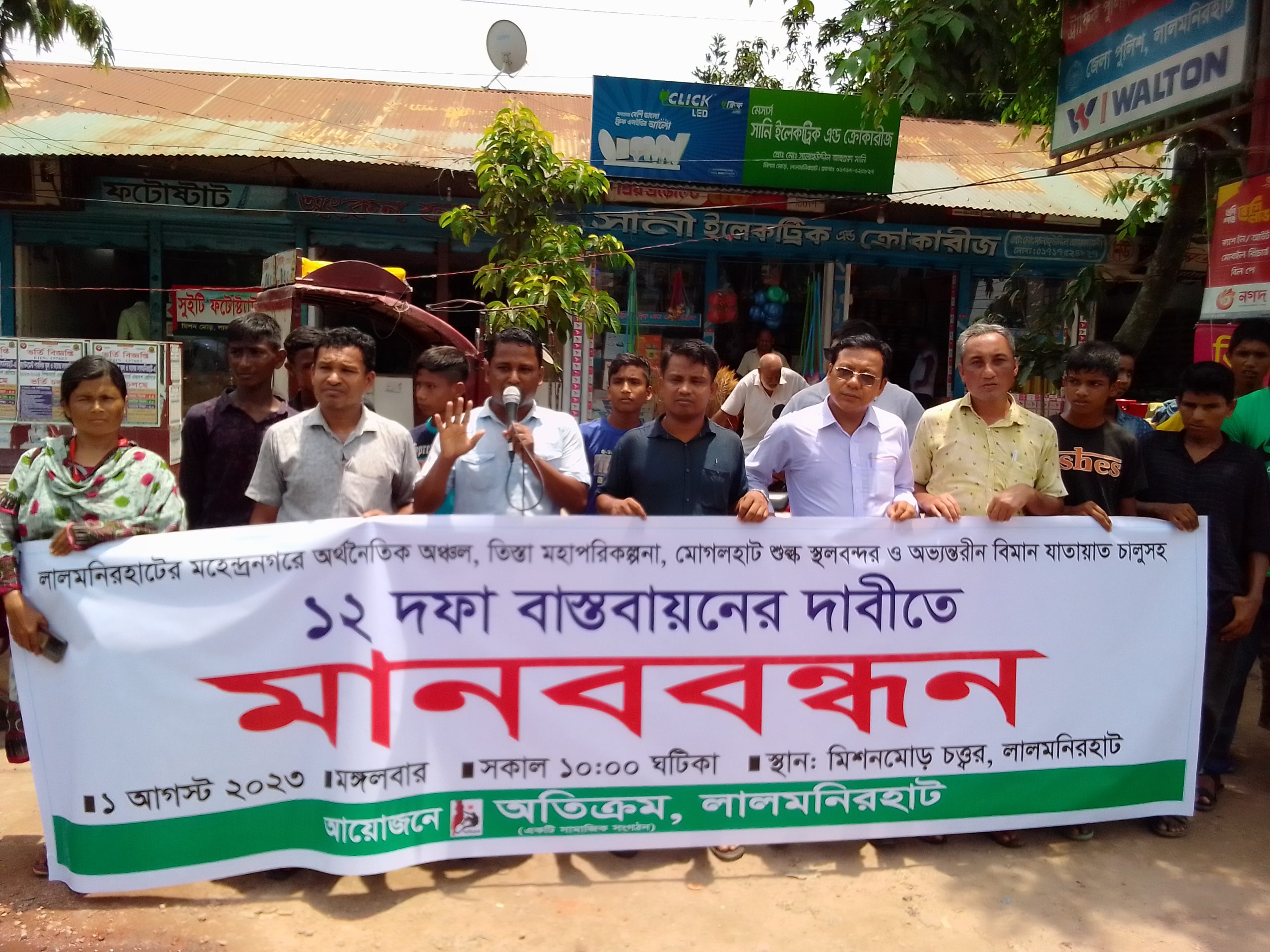 মঙ্গলবার (১ আগস্ট) সকাল ১০টায় লালমনিরহাটের মিশন মোড় চত্ত্বরে অতিক্রম লালমনিরহাটের আয়োজনে এ মানববন্ধন অনুষ্ঠিত হয়।