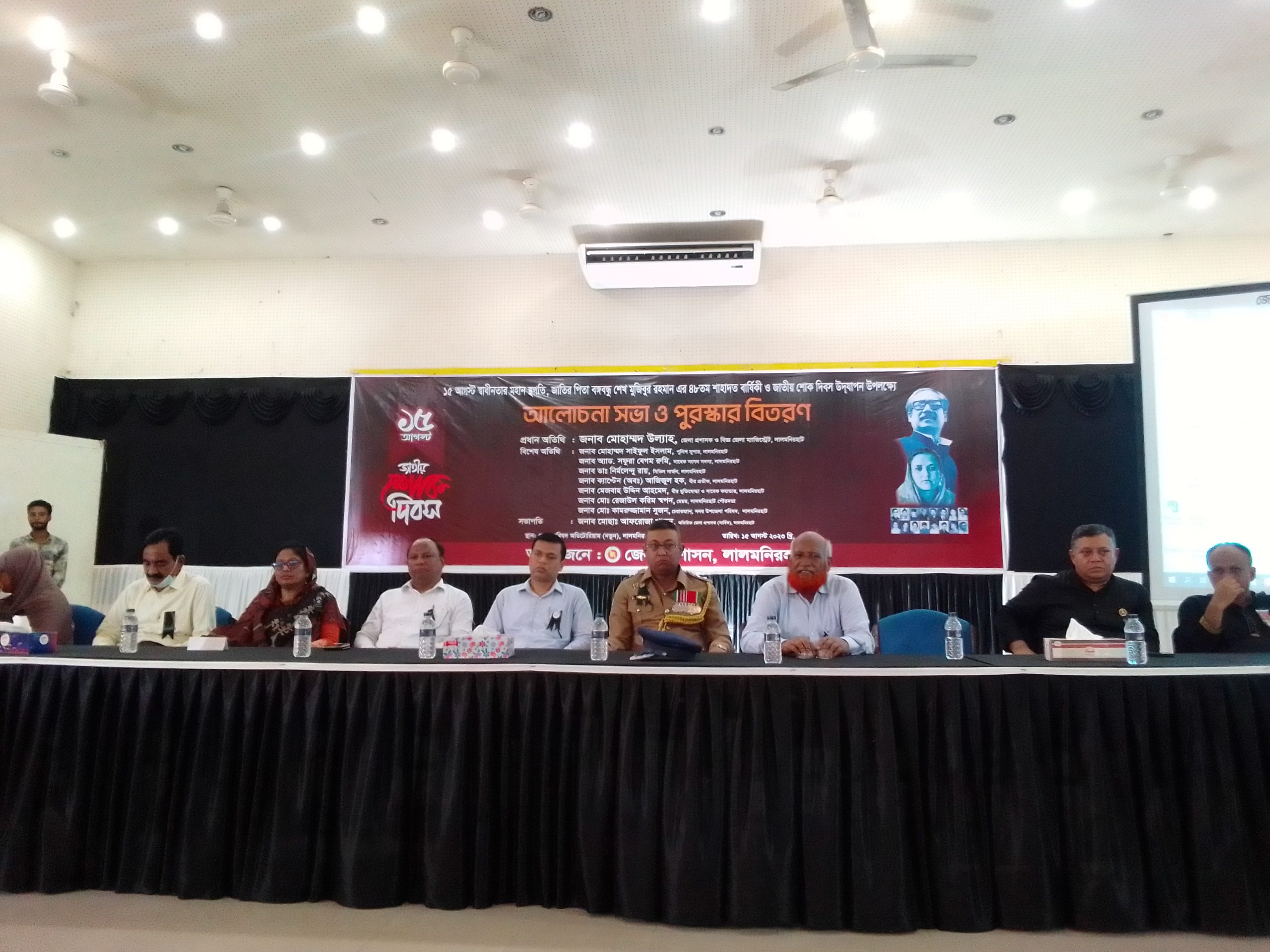 মঙ্গলবার (১৫ আগস্ট) সকাল ১০টায় লালমনিরহাট জেলা পরিষদ অডিটোরিয়ামে লালমনিরহাট জেলা প্রশাসনের আয়োজনে এ আলোচনা সভা ও পুরস্কার বিতরণ অনুষ্ঠান অনুষ্ঠিত হয়।