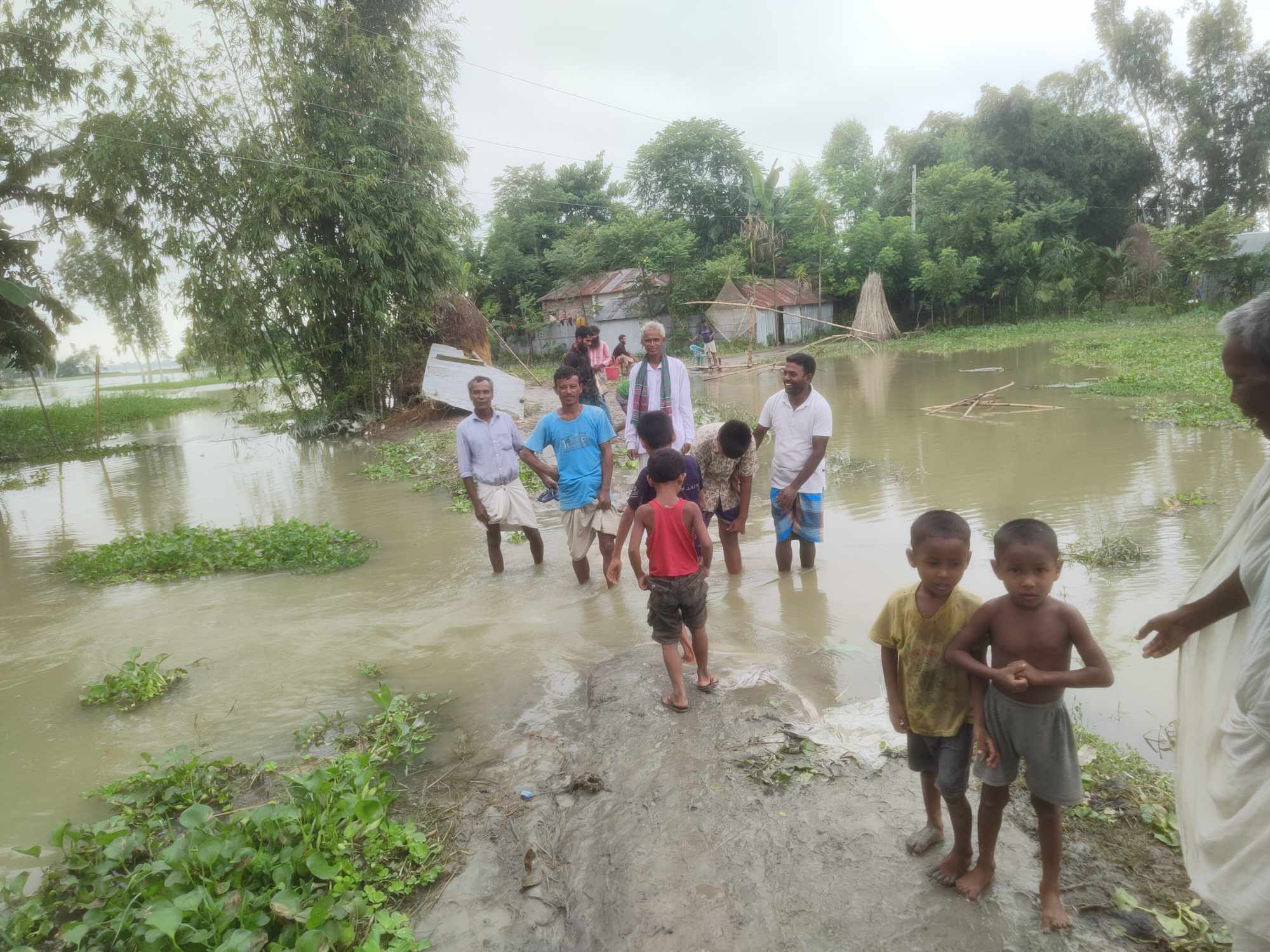 আরও দেখা গেছে, বন্যার পানিতে রাস্তা-ঘাট ভেঙ্গে গেছে। বানভাসিদের যাতায়াতে দেখা গেছে চরম ভোগান্তি। এ থেকে পরিত্রাণের যেন কোন পথ নেই।