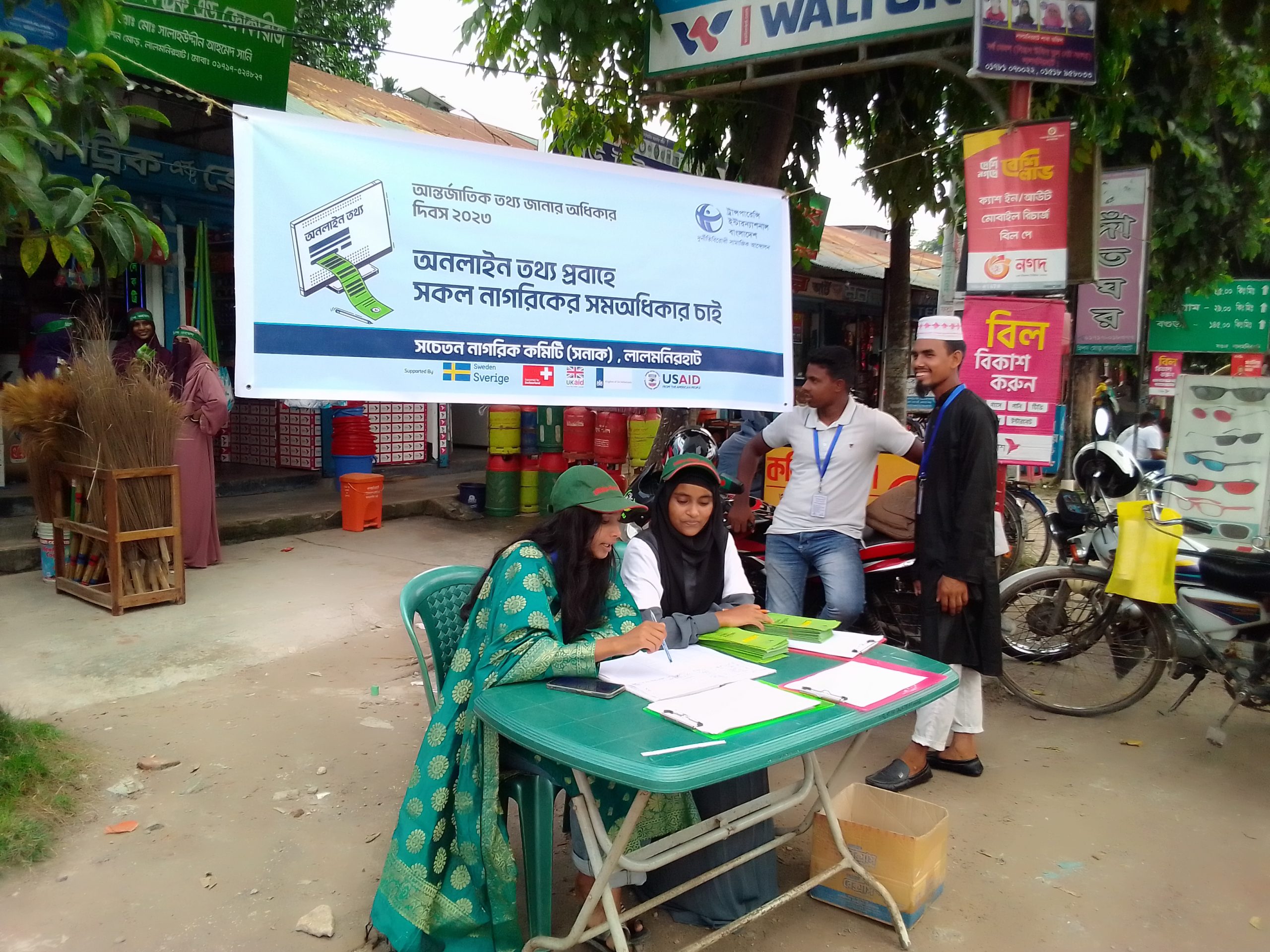 লালমনিরহাটে "অনলাইন তথ্য প্রবাহে সকল নাগরিকের সমঅধিকার চাই" স্লোগান নিয়ে আন্তর্জাতিক তথ্য জানার অধিকার দিবস ২০২৩ উপলক্ষে ফ্রি লিফলেট ও ফরম বিতরণ অনুষ্ঠিত হয়েছে।
