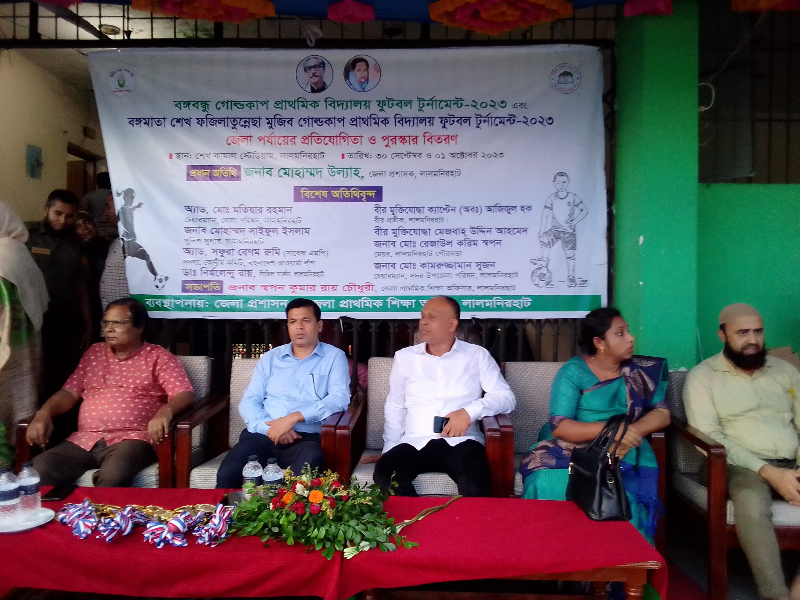 লালমনিরহাটে বঙ্গবন্ধু গোল্ডকাপ প্রাথমিক বিদ্যালয় ফুটবল টুর্ণামেন্ট-২০২৩ এবং বঙ্গমাতা শেখ ফজিলাতুন্নেছা মুজিব গোল্ডকাপ প্রাথমিক বিদ্যালয় ফুটবল টুর্ণামেন্ট-২০২৩ জেলা পর্যায়ের প্রতিযোগিতা ও পুরস্কার বিতরণী অনুষ্ঠান অনুষ্ঠিত হয়েছে।