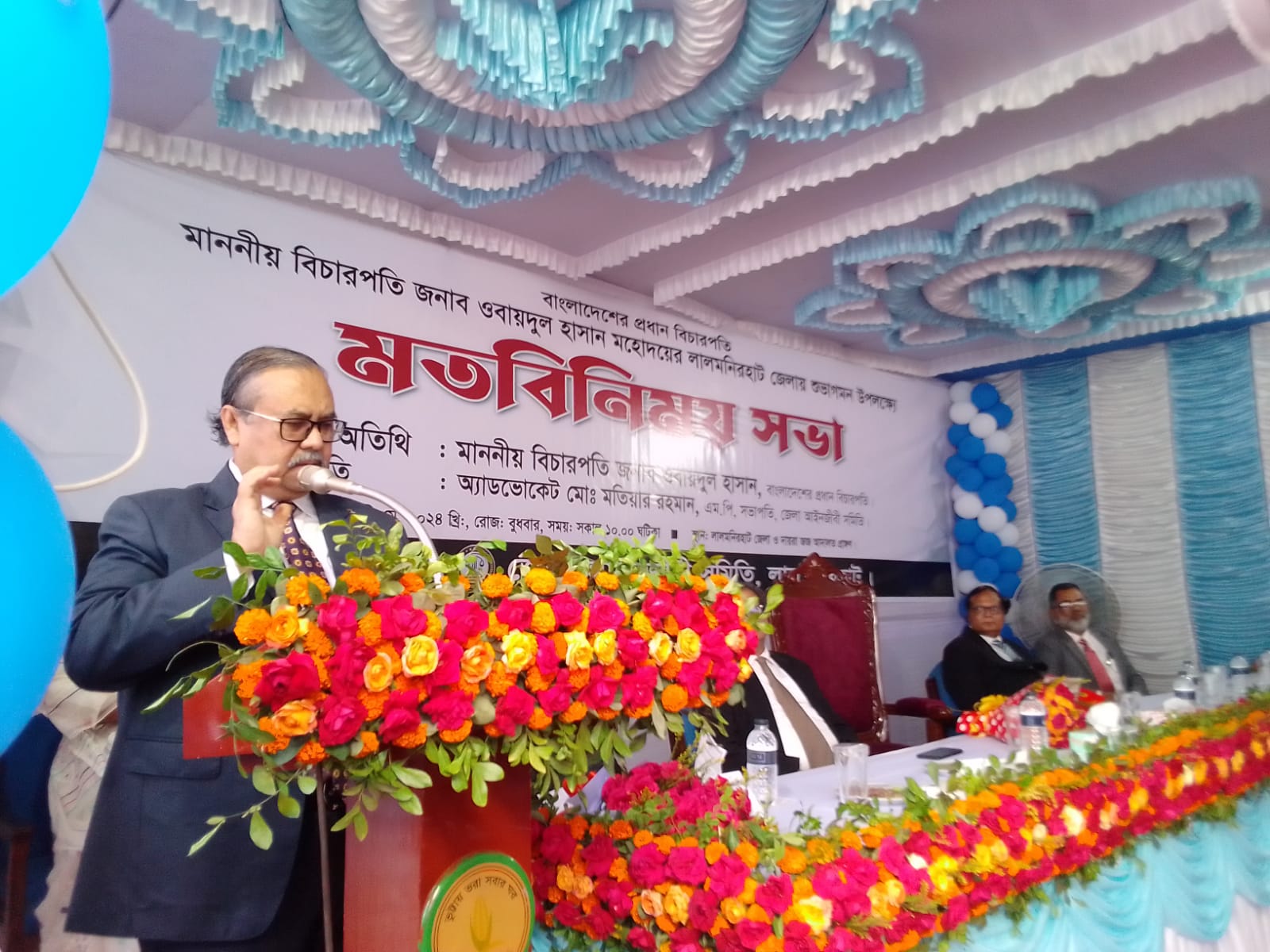 লালমনিরহাটে বাংলাদেশের প্রধান বিচারপতি মাননীয় বিচারপতি জনাব ওবায়দুল হাসান মহোদয়ের লালমনিরহাট জেলায় শুভাগমন উপলক্ষ্যে মতবিনিময় সভা অনুষ্ঠিত হয়েছে।
