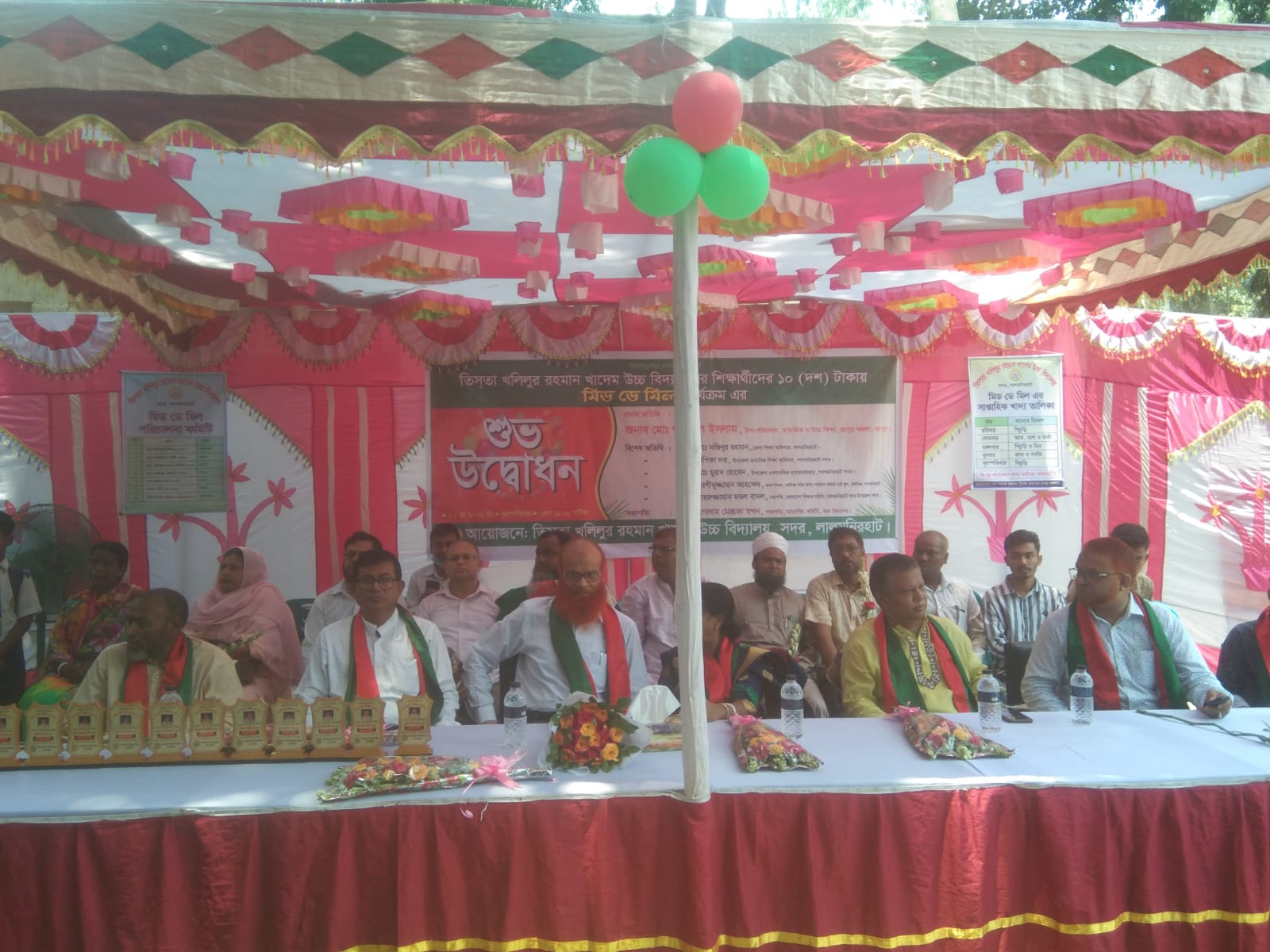 তিস্তা খলিলুর রহমান খাদেম উচ্চ বিদ্যালয়ের ম্যানেজিং কমিটির সভাপতি গোলাম মোস্তফা স্বপন-এঁর সভাপতিত্বে তিস্তা খলিলুর রহমান খাদেম উচ্চ বিদ্যালয়ের সহকারী শিক্ষক রাকিবুল ইসলাম আমিন-এঁর সঞ্চালনায় প্রধান অতিথি ছিলেন মাধ্যমিক ও উচ্চ শিক্ষা রংপুর অঞ্চলের উপ-পরিচালক মোঃ শফিকুল ইসলাম। এতে বিশেষ অতিথি ছিলেন লালমনিরহাট জেলা শিক্ষা অফিসার মজিবুর রহমান, লালমনিরহাট সদর উপজেলা মাধ্যমিক শিক্ষা অফিসার লিপিকা দত্ত, লালমনিরহাট সদর উপজেলা একাডেমিক সুপারভাইজার মোঃ মুরাদ হোসেন, কালীগঞ্জ করিম উদ্দিন পাবলিক পাইলট হাইস্কুলের প্রধান শিক্ষক খুরশীদুজ্জামান আহমেদ, বাংলাদেশ শিক্ষক সমিতি লালমনিরহাট সদর উপজেলা শাখার সভাপতি খায়রুজ্জামান মন্ডল বাদল। বক্তব্য রাখেন তিস্তা খলিলুর রহমান খাদেম উচ্চ বিদ্যালয়ের প্রধান শিক্ষক একরামুল হক সরকার, বাংলাদেশ শিক্ষক সমিতি লালমনিরহাট জেলা শাখার সাধারণ সম্পাদক আব্দুল মজিদ মন্ডল। এ সময় তিস্তা খলিলুর রহমান খাদেম উচ্চ বিদ্যালয় পরিচালনা পর্ষদ, শিক্ষক-শিক্ষিকা, ছাত্র-ছাত্রী, অভিভাবকবৃন্দ উপস্থিত ছিলেন।