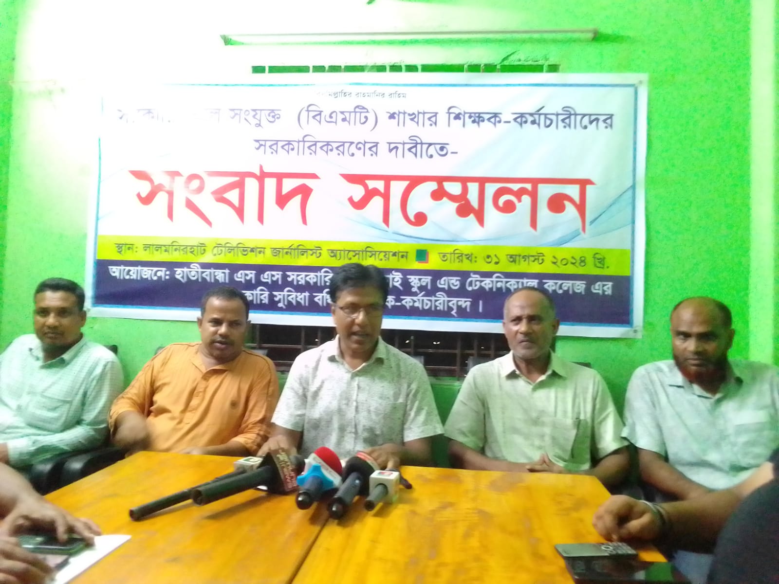 লালমনিরহাটে সরকারি স্কুলে সংযুক্ত (বিএমটি) শাখার শিক্ষক-কর্মচারীদের সরকারিকরণের দাবীতে- সংবাদ সম্মেলন অনুষ্ঠিত হয়েছে।