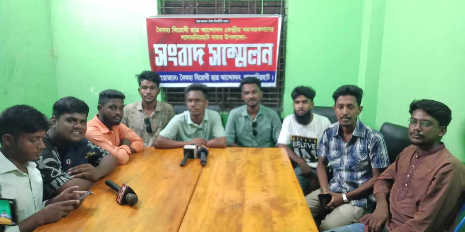 লালমনিরহাটে ছাত্র জনতার ঐক্য চিরজীবী হোক বৈষম্য বিরোধী ছাত্র আন্দোলন কেন্দ্রীয় সমন্বয়কগণের লালমনিহাট সফর উপলক্ষ্যে- সংবাদ সম্মেলন অনুষ্ঠিত হয়েছে।