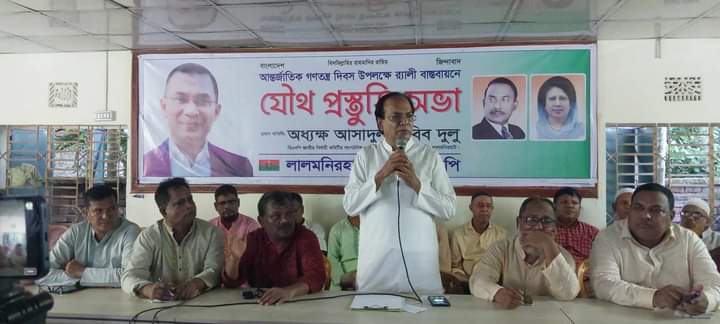 লালমনিরহাট জেলা বিএনপির সহ-সভাপতি এ্যাড. রফিকুল ইসলাম রফিক-এঁর সভাপতিত্বে প্রধান অতিথি ছিলেন বিএনপি জাতীয় নির্বাহী কমিটির রংপুর বিভাগীয় সাংগঠনিক সম্পাদক ও লালমনিরহাট জেলা বিএনপির সভাপতি অধ্যক্ষ আসাদুল হাবিব দুলু। বক্তব্য রাখেন লালমনিরহাট জেলা বিএনপির যুগ্ম সাধারণ সম্পাদক একেএম মমিনুল হক প্রমুখ। এ সময় লালমনিরহাট জেলা বিএনপির সহ-সভাপতি মোঃ রোকন উদ্দিন বাবুল, সাংগঠনিক সম্পাদক মোঃ আফজাল হোসেন, মোঃ সাহেদুল হক পাটোয়ারীসহ বিএনপির অঙ্গ ও সহযোগী সংগঠনের নেতৃবৃন্দ উপস্থিত ছিলেন।