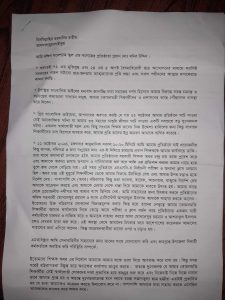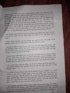 তিনি তার লিখিত বক্তব্যে বলেন, সে ঘটনার পর আমাকে আমার কক্ষে তালা দিয়ে আবরুদ্ধ করে রাখা হয়। কিছু সময় পরেই বহিরাগতরা উদ্বুদ্ধ করে অধ্যক্ষের কার্যালয় ভাংচুর করে। বহিরাগতদের উস্কানিতে কোমলমতি কিছু শিক্ষার্থীরাও অংশ নেয়। ভাংচুর করা হয় শিক্ষাপ্রতিষ্ঠানের নানা সরঞ্জামও। এ সময় কয়েকজন আহত হয়। পরে উক্ত ঘটনাকে মিথ্যাভাবে প্রচার করার উদ্দেশ্যে সেই স্বার্থান্বেষী লোকেরা গল্প সাজিয়ে শিক্ষার্থীদের ব্যবহার করে এবং আমাকে নানাভাবে দোষী সাব্যস্ত করার চেষ্টা চালাচ্ছে। এছাড়া নানাধরণের হুমকি দেওয়া হচ্ছে বলেও বক্তব্যে বলেন তিনি।