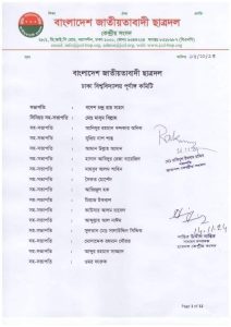 বৃহস্পতিবার (১৪ নভেম্বর) বাংলাদেশ জাতীয়তাবাদী ছাত্রদল কেন্দ্রীয় সংসদের সভাপতি রাকিবুল ইসলাম রাকিব ও সাধারণ সম্পাদক নাছির উদ্দীন নাছির স্বাক্ষরিত এ কমিটি অনুমোদন করেন।