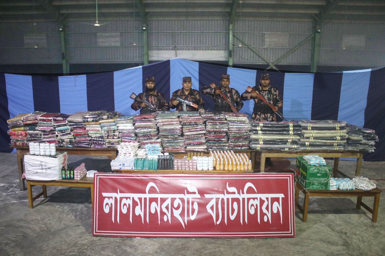 লালমনিরহাট সীমান্ত হতে বিজিবি কর্তৃক গত ৭দিনে ৪৪লক্ষাধিক টাকা মূল্যের মাদকদ্রব্য ও চোরাচালানী মালামাল আটক করেছে।