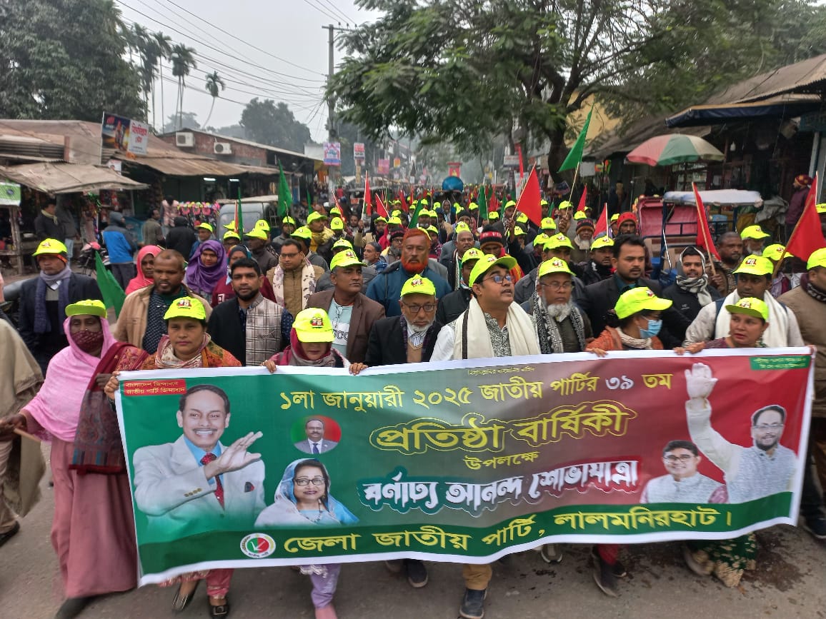 লালমনিরহাটে জাতীয় পার্টির ৩৯তম প্রতিষ্ঠা বার্ষিকী উপলক্ষে বর্ণাঢ্য আনন্দ শোভাযাত্রা ও আলোচনা সভা অনুষ্ঠিত হয়েছে।