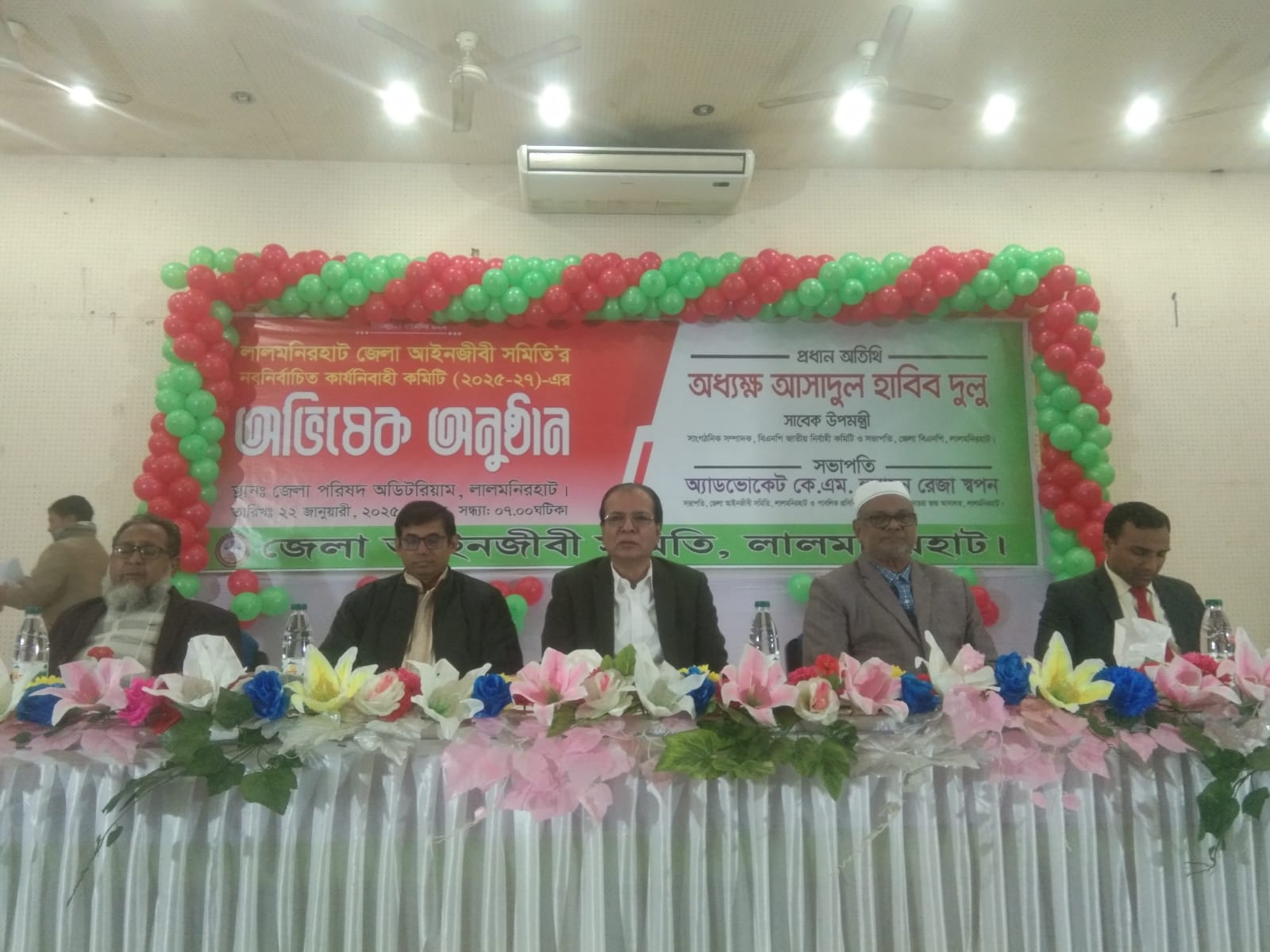লালমনিরহাট জেলা আইনজীবী সমিতি'র নবনির্বাচিত কার্যনির্বাহী কমিটি (২০২৫-২৭)-এর অভিষেক অনুষ্ঠান অনুষ্ঠিত হয়েছে।