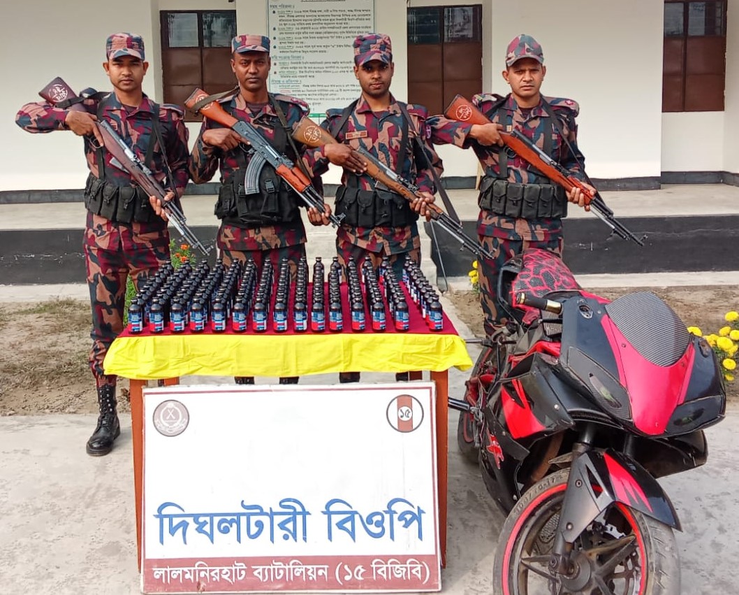 লালমনিরহাট বর্ডার গার্ড বাংলাদেশ (বিজিবি) মাদক পাচার ও চোরাচালান প্রতিরোধে জিরো টলারেন্স ঘোষণা করেছে। এরই প্রেক্ষিতে সীমান্তে কঠোর নজরদারী ও টহল তৎপরতা বৃদ্ধির মাধ্যমে সোমবার হতে বুধবার ২০ হতে ২৯ জানুয়ারি পর্যন্ত ১০দিনে লালমনিরহাট ব্যাটালিয়ন (১৫ বিজিবি) কর্তৃক ২জন চোরাকারবারী ও চোরাচালানী পণ্যবাহী ১টি মোটর সাইকেলসহ ১৩লক্ষ ৫০হাজার টাকা মূল্যের চোরাচালানকৃত অবৈধ দ্রব্য আটক করে। এর মধ্যে ১৫ বিজিবি’র ঝাউরানী, লোহাকুচি, দিঘলটারী, মোগলহাট, গোড়কমন্ডল, বালারহাট, কুলাঘাট বিশেষ ক্যাম্প ও রামখানা সীমান্ত হতে ৩লক্ষ ৩৯হাজার টাকা মূল্যের ১০৫বোতল ভারতীয় ইস্কাপ সিরাপ, ১৪.৯কেজি গাঁজা, ২১৫পিস ভারতীয় ইয়াবা, ১৪বোতল ভারতীয় মদ ও ৪১৬বোতল ভারতীয় ফেন্সিডিলসহ ২জন আসামী আটক করা হয়েছে। এছাড়া বনচৌকি ও মোগলহাট সীমান্ত হতে ৫লক্ষ ৫০হাজার টাকা মূল্যের ৭টি ভারতীয় গরু এবং দূর্গাপুর, অনন্তপুর ও শিংঝাড় সীমান্ত হতে ৫৩হাজার টাকা মূল্যের ভারতীয় চিনি, ৩০হাজার টাকা মূল্যের ভারতীয় জিরা, রামখানা ও গংগারহাট সীমান্ত হতে ১লক্ষ ৫৪হাজার টাকা মূল্যের ভারতীয় বিভিন্ন প্রকার কসমেটিকস্ সামগ্রী আটক করে। জব্দকৃত মাদক মাদকদ্রব্য নিয়ন্ত্রণ অধিদপ্তরে এবং অন্যান্য মালামাল কাস্টমসে জমাদানের কার্যক্রম প্রক্রিয়াধীন আছে বলে জানা যায়। এছাড়া মাদক পাচারে প্রত্যক্ষ অংশগ্রহণের কারণে লালমনিরহাট ব্যাটালিয়ন (১৫ বিজিবি) ২জন মাদক চোরাকারবারীকে গ্রেফতার করে পুলিশে সোপর্দ করে।