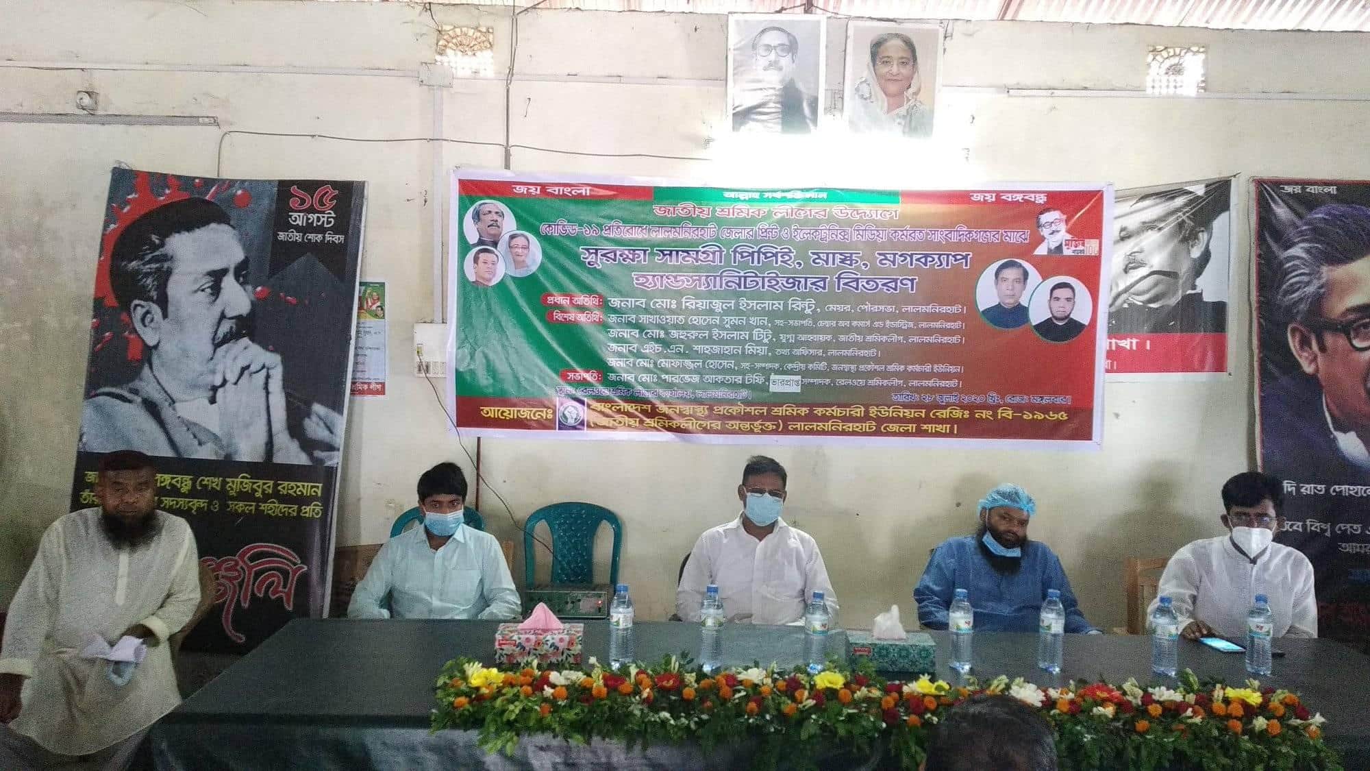 আলোর মনি ডটকম ডেস্ক রিপোর্ট: আজ ২৮ জুলাই সকাল সাড়ে ১০টায় লালমনিরহাট রেলওয়ে শ্রমিক লীগ কার্যালয়ে বাংলাদেশ জনস্বাস্থ্য প্রকৌশল শ্রমিক কর্মচারী ইউনিয়ন রেজিঃ নং বি-১৯৬৫ (জাতীয় শ্রমিক লীগের অন্তর্ভূক্ত) লালমনিরহাট জেলা শাখার আয়োজনে জাতীয় শ্রমিক লীগের উদ্যোগে কোভিড-১৯ প্রতিরোধে লালমনিরহাট জেলার প্রিন্ট ও ইলেকট্রনিক্স মিডিয়ায় কর্মরত সাংবাদিকগণের মাঝে সুরক্ষা সামগ্রী পিপিই, মাস্ক, মগক্যাপ, হ্যান্ডস্যানিটাইজার বিতরণ অনুষ্ঠিত হয়।