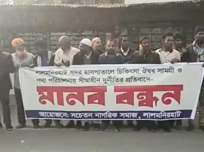 লালমনিরহাট সদর হাসপাতালে চিকিৎসা, ঔষধ সামগ্রী ও পথ্য পরিচালনায় সীমাহীন দুর্নীতির প্রতিবাদে মানববন্ধন অনুষ্ঠিত হয়েছে।