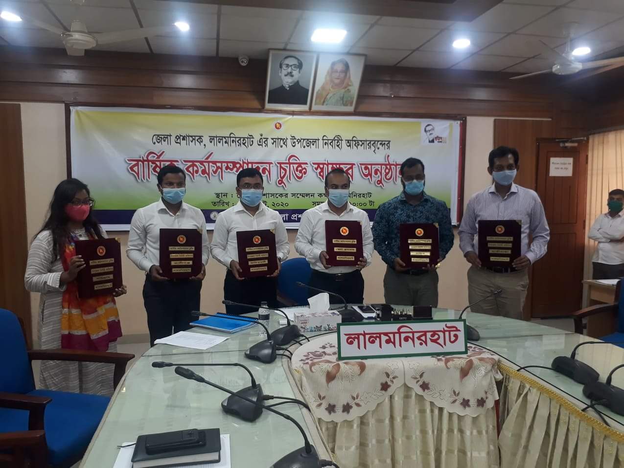 বাৎসরিক কর্মসম্পাদন চুক্তিপত্র মতে লালমনিরহাট সদর উপজেলা নির্বাহী কর্মকর্তা বাস্তবায়ন করতে চান- সেবা প্রত্যাশীদের জন্য সুপেয় পানি ও শৌচাগার নির্মাণ, ৬৫লক্ষ টাকা ভূমি উন্নয়ন কর আদায়, কর্মকর্তা-কর্মচারীদের প্রশিক্ষণের মাধ্যমে দক্ষতা বৃদ্ধি, শতভাগ মিউটেশন কেস খতিয়ান হালকরণ, সরকারি সম্পত্তির হালনাগাদ ডাটাবেজ তৈরি, ৬০টি ভূমিহীন পরিবারকে পুর্ণবাসন, শতভাগ ই-নামজারি বাস্তবায়ন ও লালমনিরহাট সদর উপজেলাকে মাদকমুক্ত হিসেবে ঘোষণা করা। আদিতমারী উপজেলা নির্বাহী কর্মকর্তা বিদ্যুতের লোডশেডিং ও বাধাহীন ইন্টারনেট সংযোগের ঘাটতি এবং উপজেলাকে ভিক্ষুকমুক্ত কাজকে চ্যালেঞ্জ হিসেবে নিয়ে করতে চান-মাল্ডিমিডিয়া শ্রেণি পাঠদান নিশ্চিত করার ব্যাপারে কার্যকর পদক্ষেপ গ্রহণ, বাঁশ উৎপাদন এলাকা হিসেবে এই খাতকে ব্যবহার করে বাঁশ ভিত্তিক শিল্প-কারখানা স্থাপনে প্রয়োজনীয় পদক্ষেপ প্রহণ, গ্রাম আদালতকে সক্রিয় করা, ফেসবুকের মাধ্যমে তাৎক্ষণিক সমাধান এবং উপজেলা প্রশাসনকে জনবান্ধব-সেবামুখী হিসেবে গড়ে তোলা। একইভাবে কালীগঞ্জ, হাতীবান্ধা ও পাটগ্রাম উপজেলা নির্বাহী কর্মকর্তা বার্ষিক কর্মসম্পাদন করতে চান।
