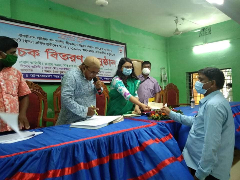 আজ বৃহস্পতিবার ২৭ আগস্ট লালমনিরহাট সদর উপজেলা পরিষদ হলরুমে লালমনিরহাট উপজেলা সমাজসেবা কার্যালয়ের আয়োজনে ২শত ৫০জন প্রান্তিক জনগোষ্ঠীর জীবনমান উন্নয়ন শীর্ষক প্রকল্পের আওতায় সফট স্কিলস প্রশিক্ষণার্থীদের মাঝে ১৮হাজার টাকার চেক বিতরণ করা হয়।