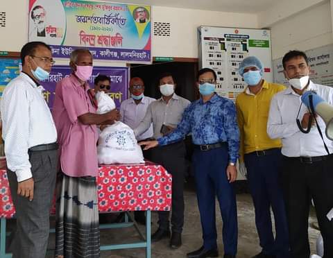 বন্যার্তদের মাঝে ত্রাণ সামগ্রী বিতরণ করেন কালীগঞ্জ উপজেলা নির্বাহী কর্মকর্তা রবিউল হাসান। এ সময় সোনালী ব্যাংক লিমিটেড রংপুর জেনারেল ম্যানেজার্স অফিসের জেনারেল ম্যানেজার (ইনচার্জ) রশিদুল ইসলাম, রংপুর প্রিন্সিপাল অফিসের ডেপুটি জেনারেল ম্যানেজার আব্দুল বারেক চৌধুরী, কুড়িগ্রাম প্রিন্সিপাল অফিসের ডেপুটি জেনারেল ম্যানেজার ওবায়দুর রহমান খন্দকার, কুড়িগ্রাম শাখা প্রধান ও এসিস্ট্যান্ট জেনারেল ম্যানেজার ওয়াহেদুন নবী, কালীগঞ্জ শাখার ম্যানেজার (পিও) এরশাদুল হক, কাকিনা বাজার শাখার ম্যানেজার (এসও) সুমন চন্দ্র সাহা, কাকিনা ইউনিয়ন পরিষদের চেয়ারম্যান শহীদুল ইসলামসহ স্থানীয় গণ্যমান্য ব্যক্তিবর্গ উপস্থিত ছিলেন।