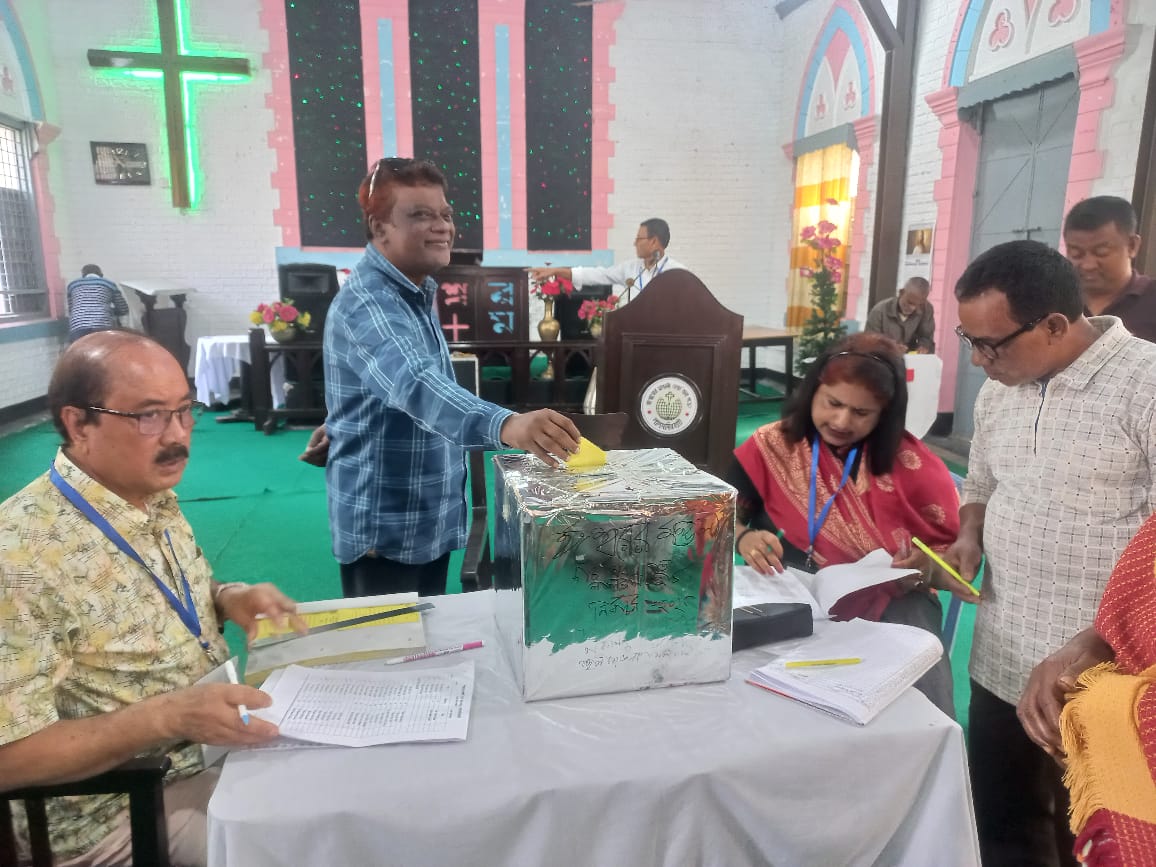 ঈশ্বরের মন্ডলী (চার্চ অব গড)র সাধারণ নির্বাচন-২০২৫ এর ফলাফল ঘোষণা করেন ঈশ্বরের মন্ডলী (চার্চ অব গড)র সাধারণ নির্বাচন-২০২৫ এর প্রধান নির্বাচন কমিশনার মিঃ সচ্চিদা নন্দ বর্ম্মন পালক, সহকারী নির্বাচন কমিশনার মিঃ চারু চন্দ্র রায় ও মিসেস লাকী ব্যানাজী।