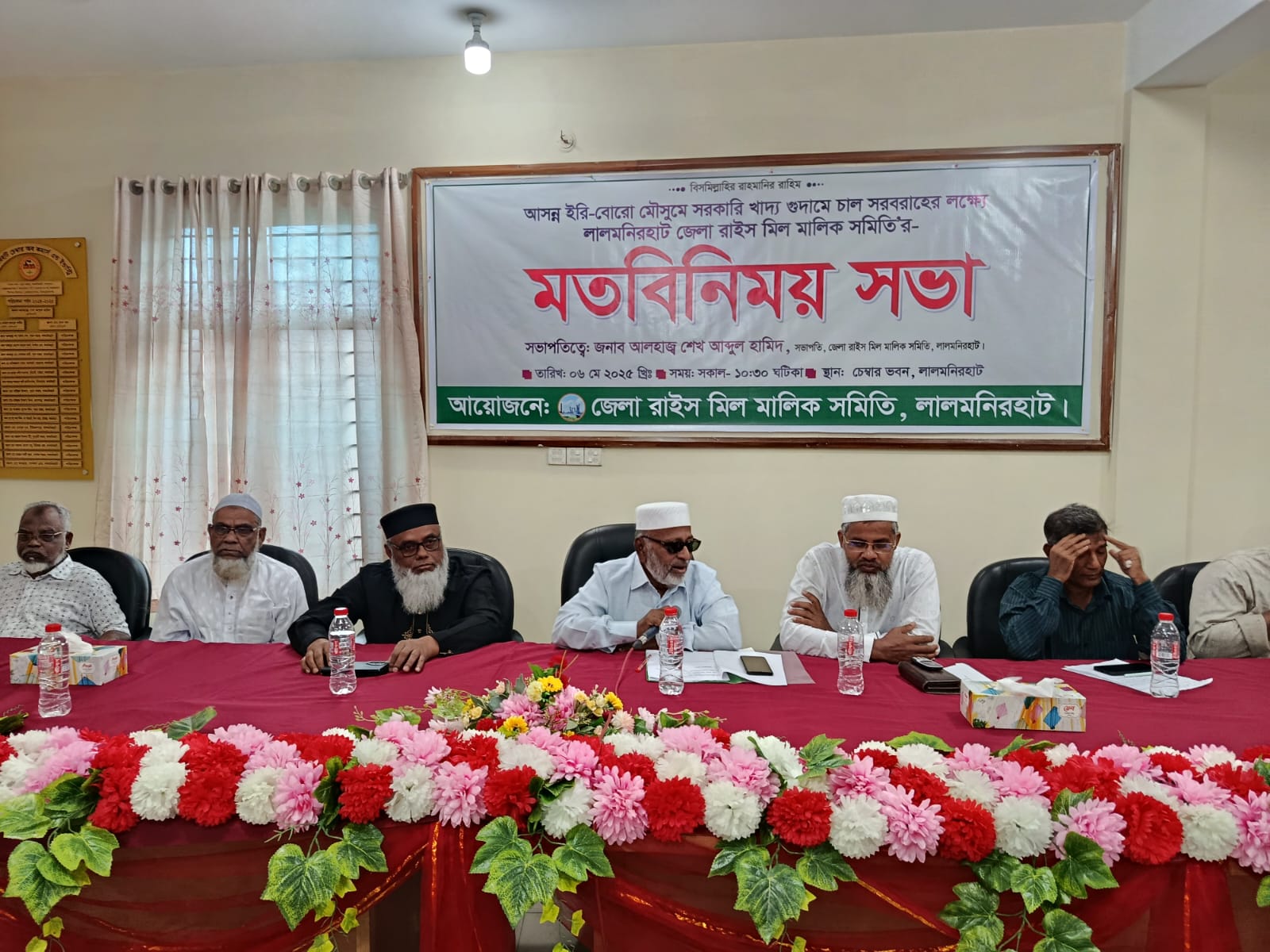 মঙ্গলবার (৬ মে) সকাল ১০টা ৩০মিনিটে লালমনিরহাটের চেম্বার ভবনে লালমনিরহাট জেলা রাইস মিল মালিক সমিতির আয়োজনে এ মতবিনিময় সভা অনুষ্ঠিত হয়।