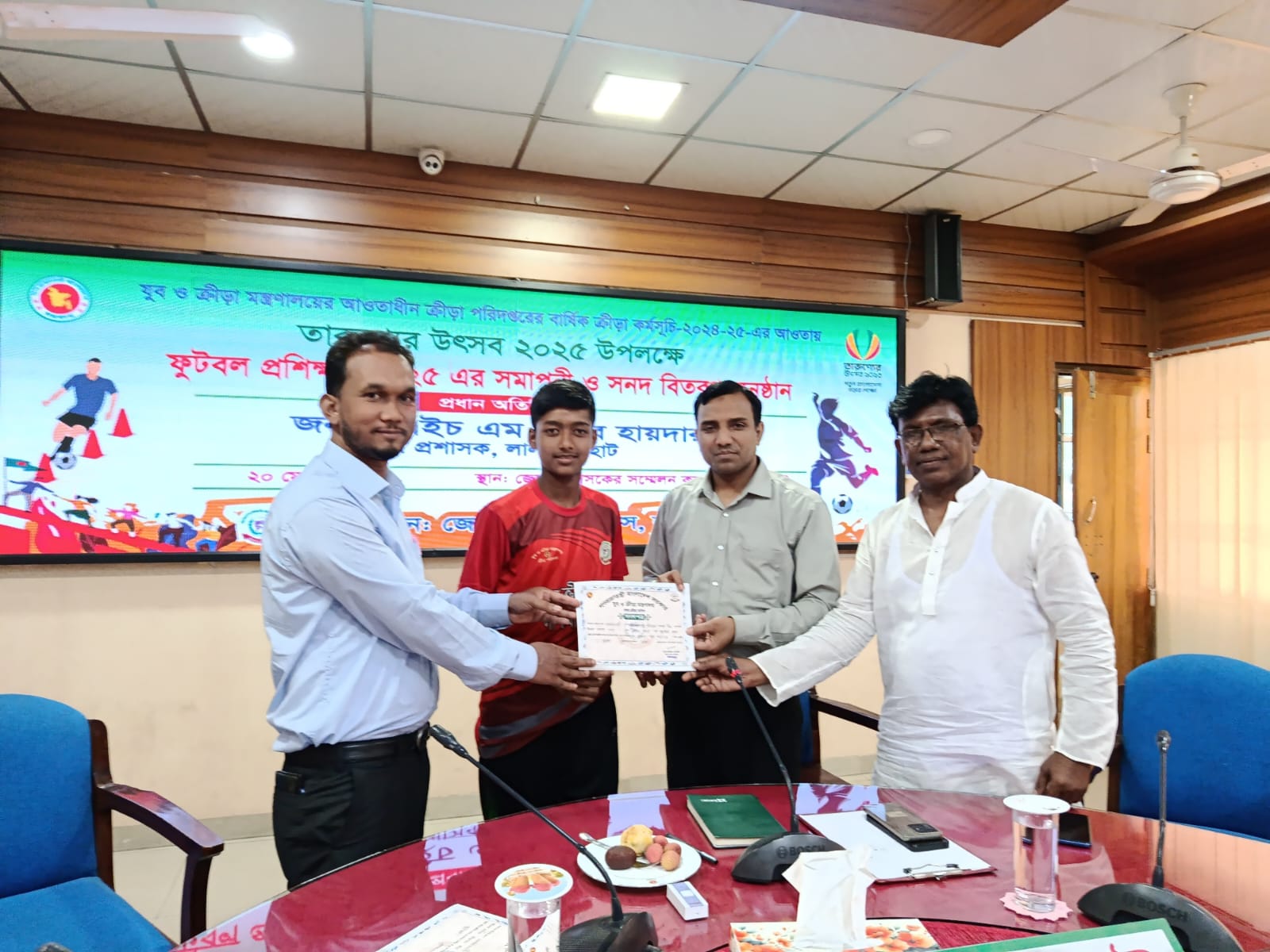 লালমনিরহাটে যুব ও ক্রীড়া মন্ত্রণালয়ের আওতাধীন ক্রীড়া পরিদপ্তরের বার্ষিক ক্রীড়া কর্মসূচি-২০২৪-২৫-এর আওতায় তারুণ্যের উৎসব ২০২৫ উপলক্ষে ফুটবল প্রশিক্ষণ-২০২৫ এর সমাপনী ও সনদ বিতরণ অনুষ্ঠান অনুষ্ঠিত হয়েছে।