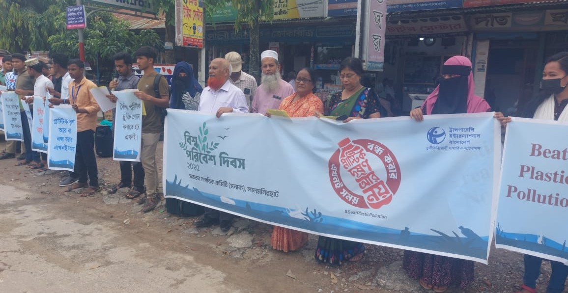 লালমনিরহাটে "প্লাষ্টিক দূষণ আর নয়" স্লোগানে বিশ্ব পরিবেশ ২০২৫ উপলক্ষে মানববন্ধন কর্মসূচি অনুষ্ঠিত হয়েছে।