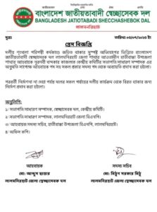 উল্লেখ্য যে, দলীয় শৃঙ্খলা পরিপন্থী কর্মকান্ডে জড়িত থাকার সুস্পষ্ট অভিযোগের ভিত্তিতে দলীয় পদ থেকে অব্যাহতি প্রসঙ্গে সদয় অবগতির জন্য অনুলিপি স্বেচ্ছাসেবক দল কেন্দ্রীয় কমিটির সভাপতি/ সাধারণ সম্পাদক, লালমনিরহাট জেলা বিএনপির সভাপতি/ সাধারণ সম্পাদক, হাতীবান্ধা উপজেলা বিএনপির আহবায়ক/ সদস্য সচিব, অফিস কপি বরাবরে ইতিমধ্যেই প্রেরণ করা হয়েছে।