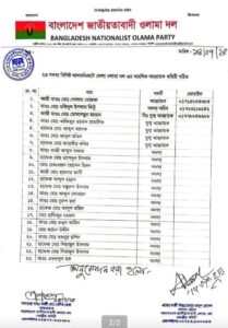 বাংলাদেশ জাতীয়তাবাদী ওলামা দল কেন্দ্রীয় কমিটির আহবায়ক আলহাজ্ব মাওঃ কাজী মোঃ সেলিম রেজা ও সদস্য সচিব এ্যাডঃ কাজী মাওঃ মোহাঃ আবুল হোসেন-এর স্বাক্ষর করা এক প্রেস বিজ্ঞপ্তিতে এ তথ্য জানানো হয়েছে।