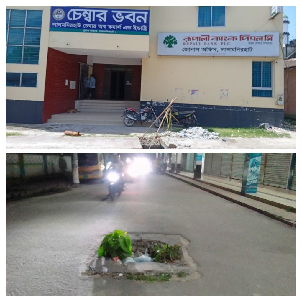 পুরান বাজার সড়কের লালমনিরহাট চেম্বার অব কমার্স এন্ড ইন্ডাস্ট্রি (চেম্বার ভবন) ও রূপালী ব্যাংক পিএলসি জোনাল অফিস লালমনিরহাট এর সামনের একটি জায়গায় ড্রেনের স্ল্যাব ভেঙে গেছে। অপরটি লালমনিরহাট জেলা শহরের পুরান বাজারস্থ শাহান শপিং কমপ্লেক্স ও লালমনিরহাট পুলিশ ফাঁড়ির সামনের সড়কটিতে ম্যানহোলের ঢাকনা ভাঙা রয়েছে।