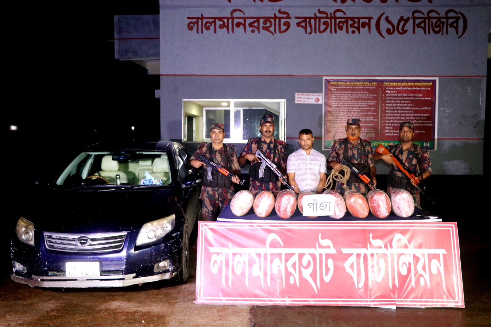 লালমনিরহাট ব্যাটালিয়ন (১৫ বিজিবি) এর অধিনায়কের পক্ষ থেকে জানানো হয়, মাদকদ্রব্যসহ ১জন আসামী আটক করা হয়। জব্দকৃত মালামালের মধ্যে ভারতীয় গাঁজা ৪০কেজি, বাজার মূল্য ১লক্ষ ৪০হাজার টাকা, প্রাইভেটকার ১টি, বাজার মূল্য ১৫লক্ষ টাকা, মোবাইল ফোন-২টি, বাজার মূল্য ২২হাজার টাকা ও নগদ-১১হাজার টাকা, যার সর্বমোট বাজার মূল্য ১৬লক্ষ ৬২হাজার টাকা। আটকৃত আসামী মোঃ ইসমাইল হোসেন (৩৭), পিতা- মোঃ আব্দুল হাকিম, গ্রাম- মুরাড়িপুর, থানা- মিঠাপুকুর ও জেলা- রংপুরকে এর বিরুদ্ধে মামলা দায়েরপূর্বক জব্দকৃত মালামালসহ লালমনিরহাট সদর থানায় হস্তান্তর করা হয়।