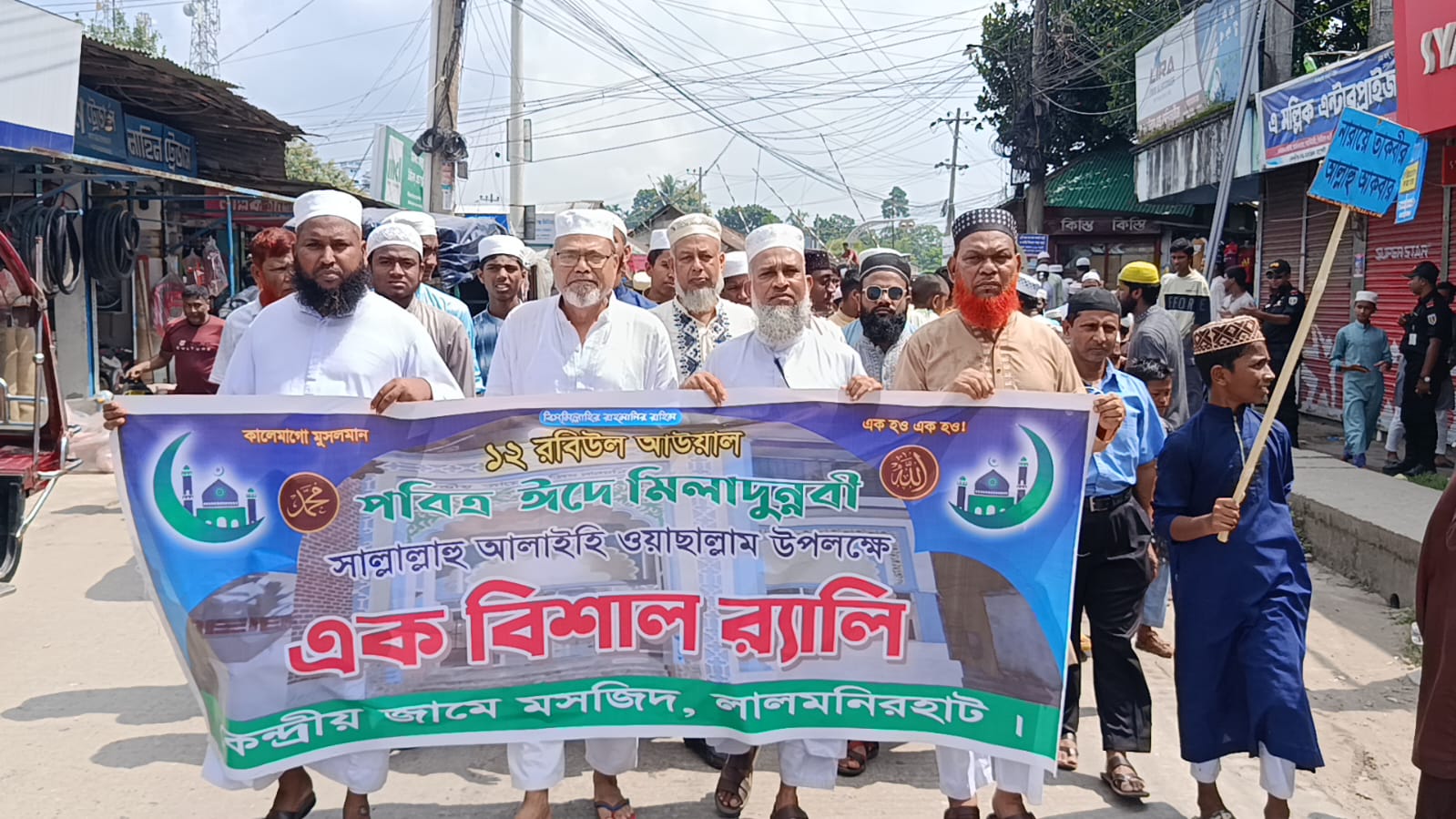 লালমনিরহাটে "কালেমাগো মুসলমান, এক হও এক হও!" প্রতিপাদ্যকে সামনে রেখে ১২ রবিউল আউয়াল পবিত্র ঈদে মিলাদুন্নবী সাল্লাল্লাহু আলাইহি ওয়াছাল্লাম উপলক্ষে এক বিশাল র্যালি ও আলোচনা সভা অনুষ্ঠিত হয়েছে।