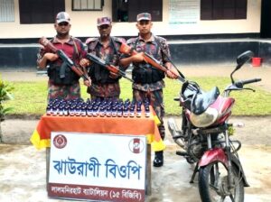 বিশ্বস্ত গোয়েন্দা সূত্রে বিজিবি জানতে পারে যে, চোরাকারবারীরা সীমান্ত দিয়ে মাদক পাচার করবে। উক্ত তথ্যানুযায়ী, বনচৌকি বিওপি’র আওতাধীন পশ্চিম বনচৌকি এবং ঝাউরানী বিওপি’র আওতাধীন উত্তর ঝাউরানী (থানা- হাতীবান্ধা, জেলা- লালমনিরহাট) নামক স্থানে রাতে ও দিনে বিজিবি’র ২টি বিশেষ টহলদল অভিযান চালায়। কতিপয় সন্দেহজনক ব্যক্তির গতিবিধি লক্ষ্য করে বিজিবি টহল দলের সদস্যরা ধাওয়া করলে চোরাকারবারীরা তাদের সাথে থাকা মালামাল ফেলে পালিয়ে যায়। পরে ফেলে রাখা মালামাল গুলো তল্লাশি করে বিপুল পরিমান মাদকদ্রব্যসহ ১টি মোটর সাইকেল জব্দ করা হয়।