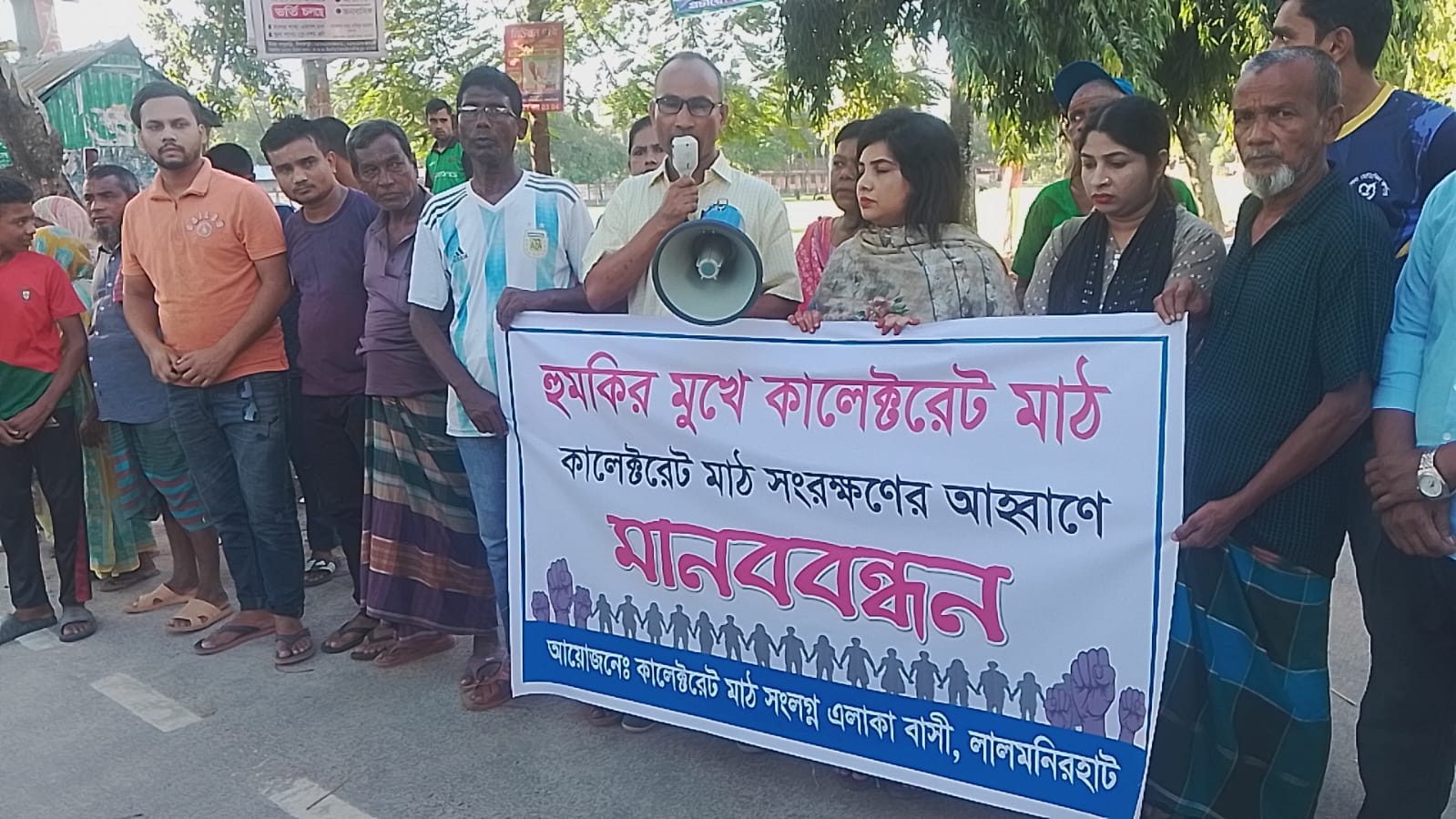 লালমনিরহাটে ঐতিহ্যবাহী কালেক্টরেট মাঠকে হুমকির মুখ থেকে রক্ষা করে সংরক্ষণের আহ্বানে মানববন্ধন অনুষ্ঠিত হয়েছে।