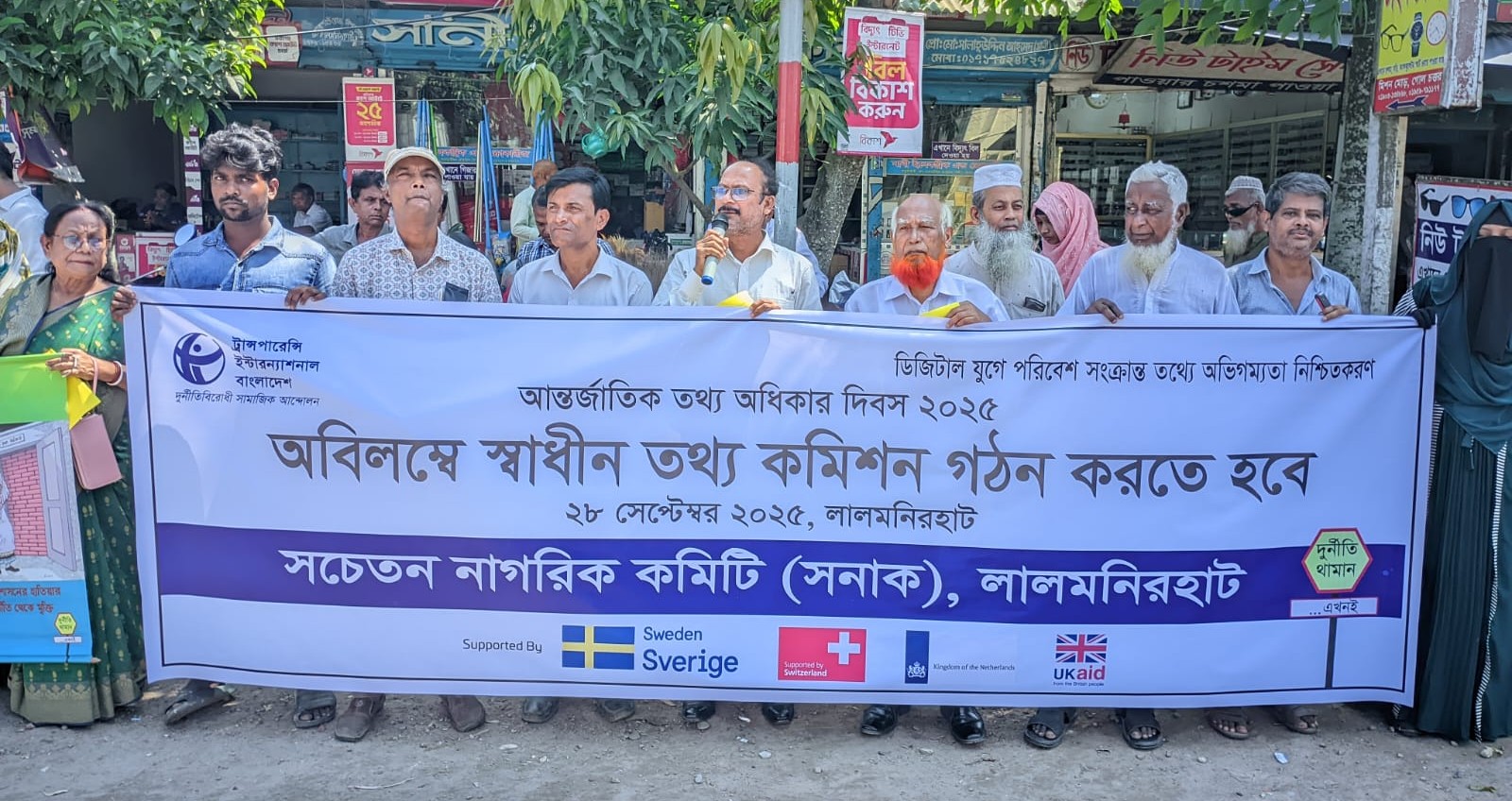 লালমনিরহাটে "অবিলম্বে স্বাধীন তথ্য কমিশন গঠন করতে হবে" এ দাবিতে আন্তর্জাতিক তথ্য অধিকার দিবস-২০২৫ উপলক্ষে মানববন্ধন কর্মসূচি অনুষ্ঠিত হয়েছে।