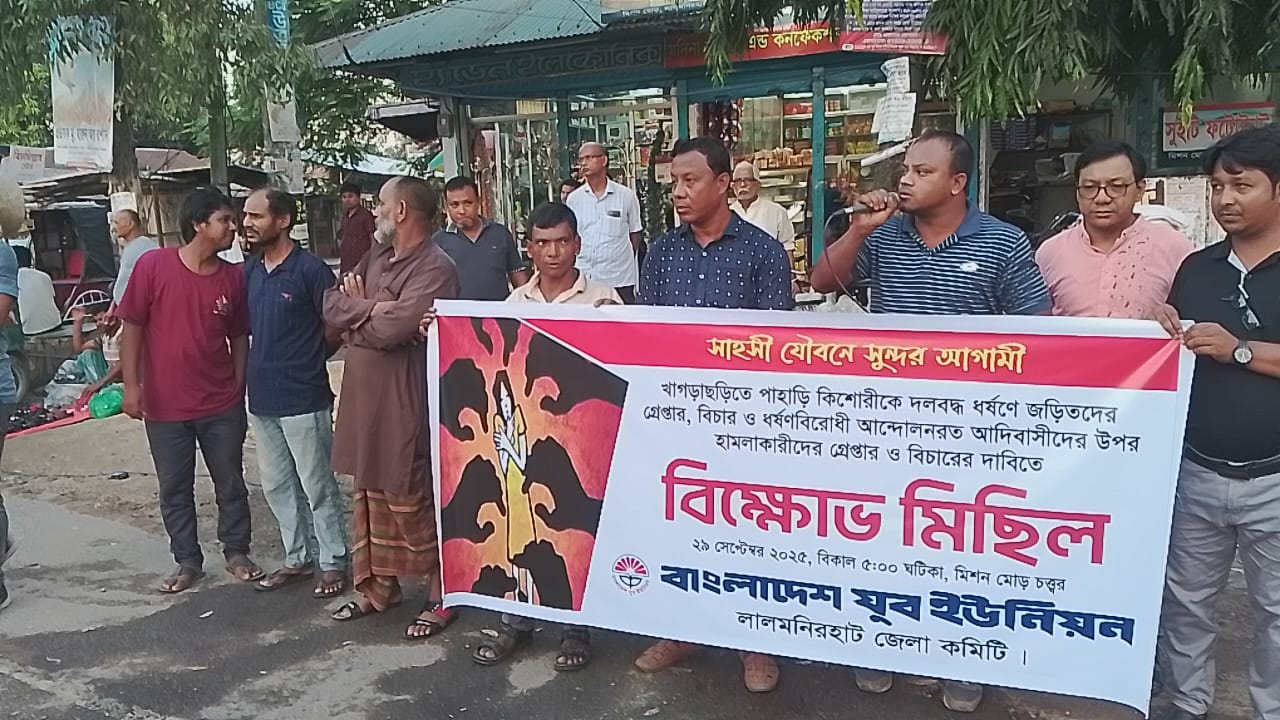 লালমনিরহাটে "সাহসী যৌবনে সুন্দর আগামী" স্রোগান নিয়ে খাগড়াছড়িতে পাহাড়ি কিশোরীকে দলবদ্ধ ধর্ষণে জড়িতদের গ্রেপ্তার, বিচার ও ধর্ষণবিরোধী আন্দোলনরত আদিবাসীদের উপর হামলাকারীদের গ্রেপ্তার ও বিচারের দাবিতে বিক্ষোভ মিছিল অনুষ্ঠিত হয়েছে।