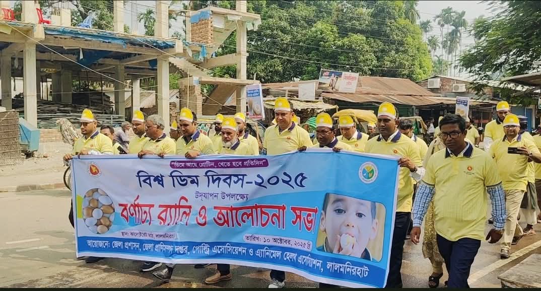 লালমনিরহাটে "ডিমে আছে প্রোটিন, খেতে হবে প্রতিদিন" প্রতিপাদ্যকে সামনে রেখে বিশ্ব ডিম দিবস-২০২৫ উদযাপন উপলক্ষ্যে বর্ণাঢ্য র্যালি ও আলোচনা সভা এবং সুলভ মূল্যে নিরাপদ ডিম বিক্রয় অনুষ্ঠান অনুষ্ঠিত হয়েছে।