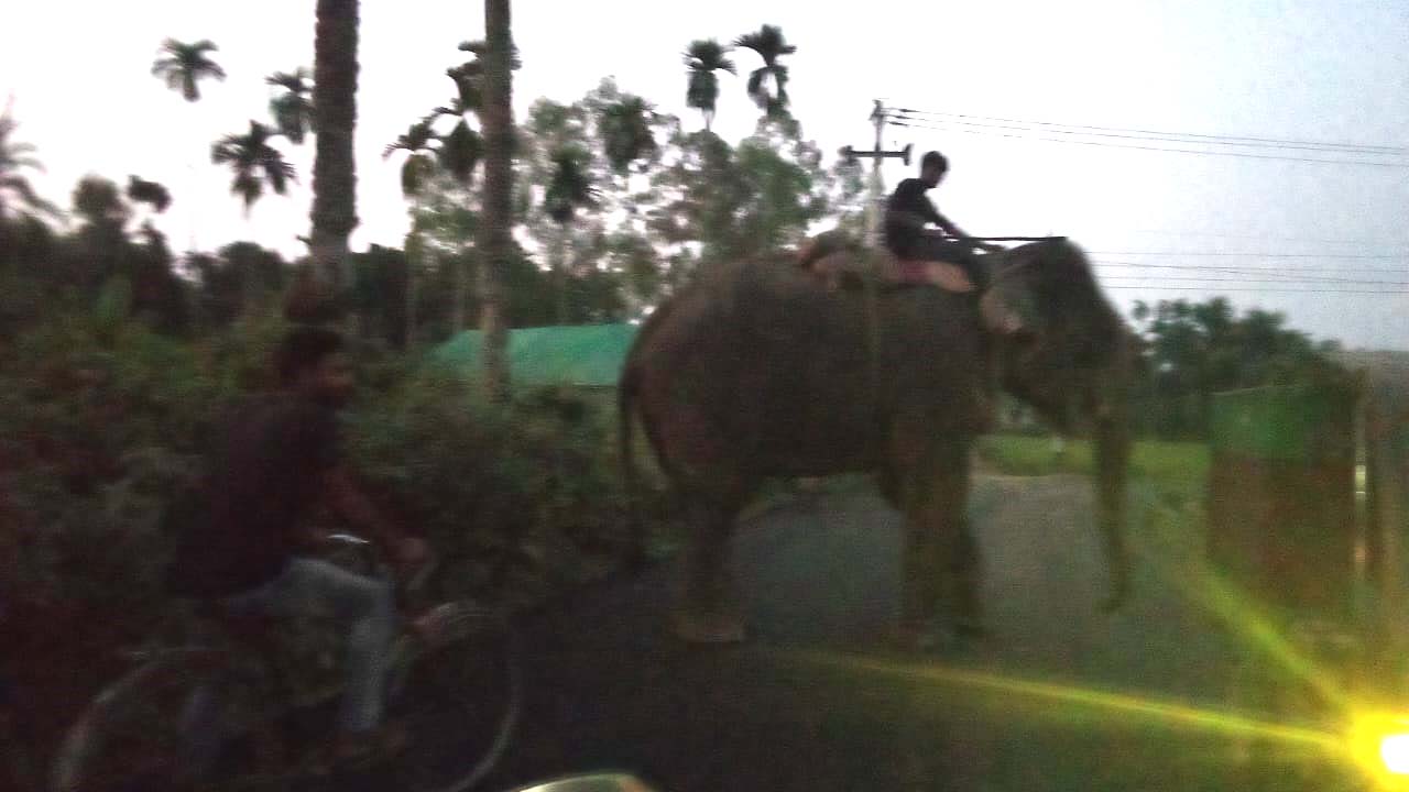 শনিবার (২৫ অক্টোবর) সন্ধ্যায় লালমনিরহাটের উত্তর সাপটানা-কাকেয়া টেপা-ভাটিবাড়ী সড়কে হাতি দিয়ে টাকা উত্তোলনের এ দৃশ্য দেখা যায়। রাস্তায় গাড়ি থামিয়ে হাতি শুঁড় উঁচু করে চালকদের কাছ থেকে টাকা নিচ্ছে।