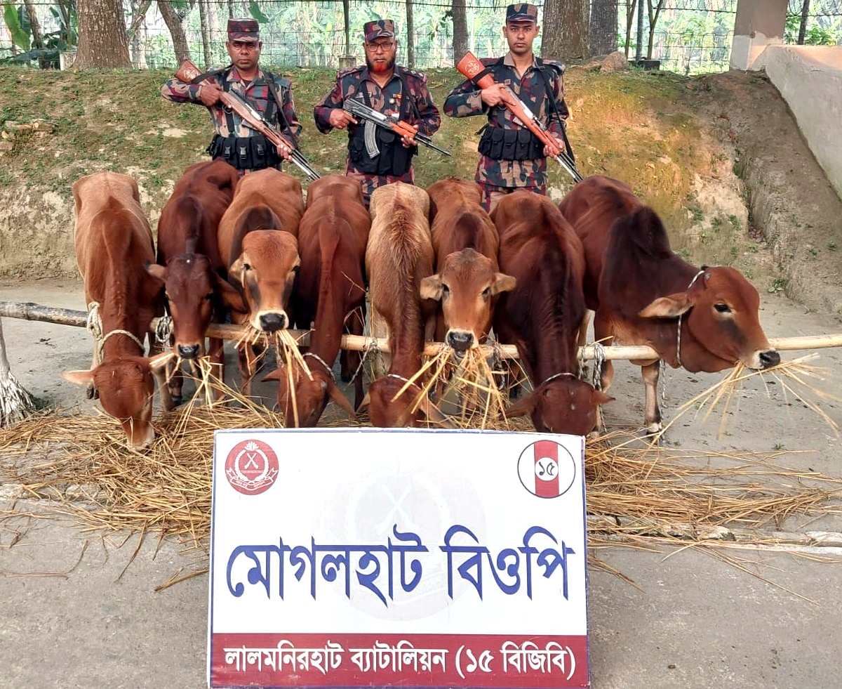 বিশ্বস্ত গোয়েন্দা সূত্রে জানা যায়, চোরাকারবারীরা ভারতীয় গরু ও মাদকদ্রব্য বাংলাদেশে পাচারের চেষ্টা করছে। উক্ত তথ্যের ভিত্তিতে রোববার (২৩ নভেম্বর) রাত আনুমানিক ১২টা ৩০মিনিটে মোগলহাট বিওপি সংশ্লিষ্ট লালমনিরহাট জেলার আদিতামারী থানার কুমারটারী এলাকায় টহল পরিচালনার সময় ভারতীয় সীমান্ত দিক থেকে গরুসহ কয়েকজন চোরাকারবারী বাংলাদেশে প্রবেশের চেষ্টা করলে বিজিবি টহলদল তাদের চ্যালেঞ্জ করে। এ সময় চোরাকারবারীরা গরু ফেলে পালিয়ে যায়। ঘটনাস্থল থেকে ৮টি ভারতীয় গরু জব্দ করা হয়।