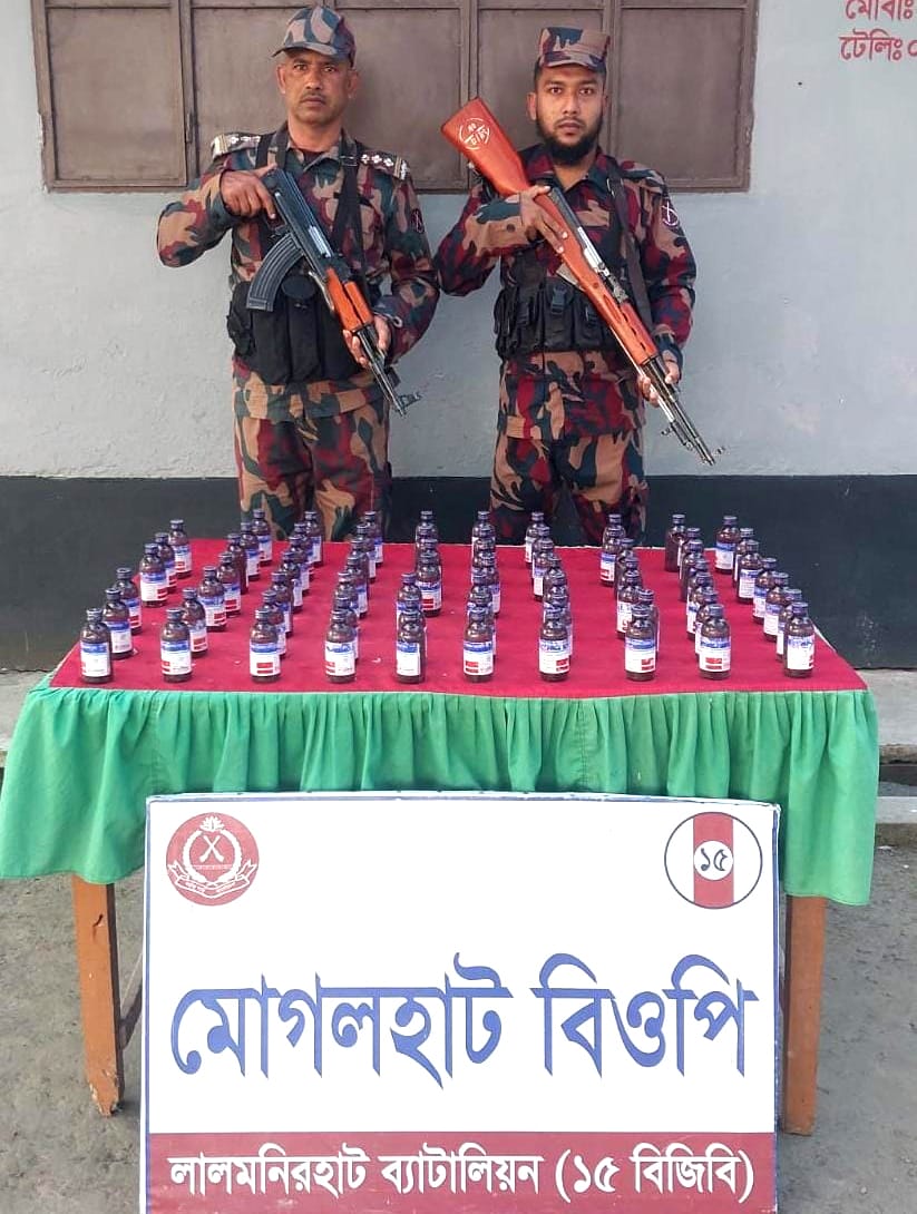 বিশ্বস্ত গোয়েন্দা সূত্রে বিজিবি জানতে পারে যে, চোরাকারবারীরা সীমান্ত দিয়ে মাদক পাচার করবে। উক্ত তথ্যানুযায়ী, সোমবার (২৪ নভেম্বর) রাত আনুমানিক ৮টায় মোগলহাট বিওপি’র আওতাধীন লালমনিরহাট জেলার আদিতমারী থানার কুমারটারী নামক স্থানে বিজিবির টহলদল বিশেষ অভিযান পরিচালনা করে। অভিযান পরিচালনাকালীন কতিপয় সন্দেহজনক ব্যক্তির গতিবিধি লক্ষ্য করে বিজিবি টহল দলের সদস্যরা চ্যালেঞ্জ করলে চোরাকারবারীরা তাদের সাথে থাকা মালামাল ফেলে দৌড়ে সীমান্ত অতিক্রম করে ভারতের অভ্যন্তরে চলে যায়। পরবর্তীতে ফেলে রাখা মালামাল তল্লাশী করে ভারতীয় ইস্কাফ সিরাপ ৬৯টি বোতল উদ্ধার করা হয়।