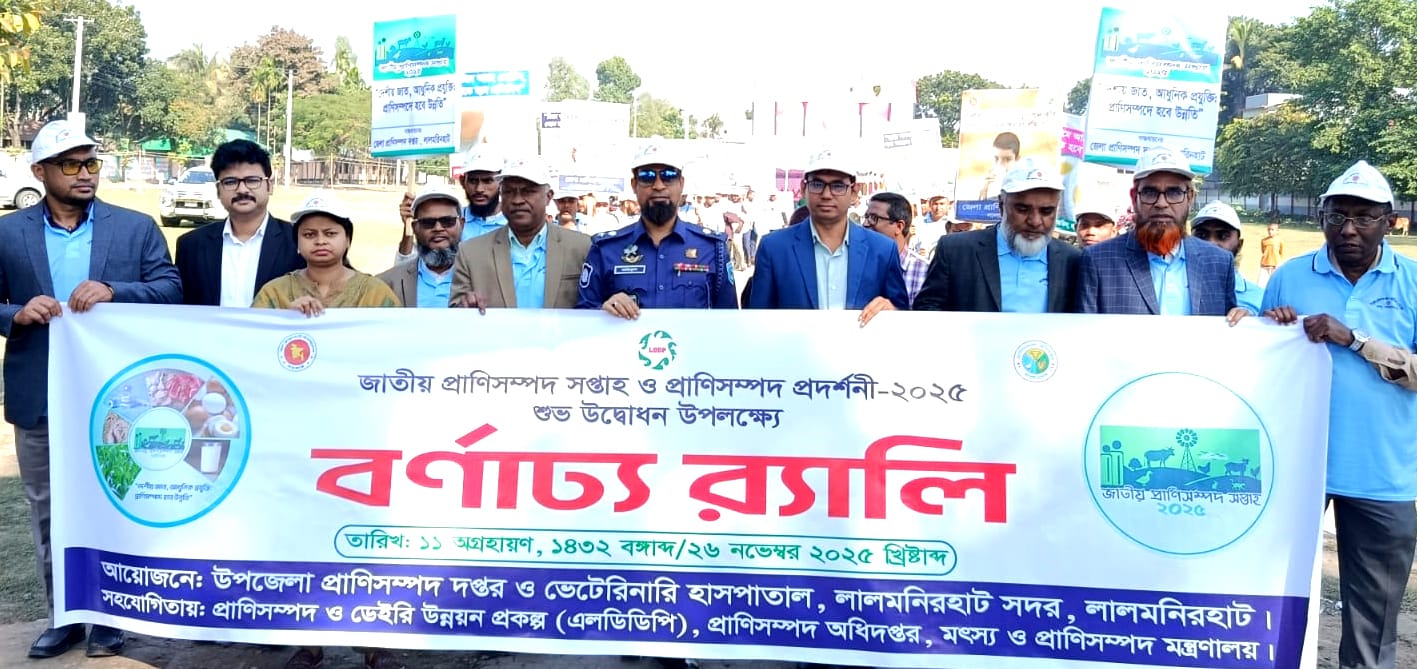 লালমনিরহাটে "দেশীয় জাত, আধুনিক প্রযুক্তি প্রাণিসম্পদে হবে উন্নতি" প্রতিপাদ্যকে সামনে রেখে লালমনিরহাটে জাতীয় প্রাণিসম্পদ সপ্তাহ ও প্রাণিসম্পদ প্রদর্শনী-২০২৫ শুভ উদ্বোধন উপলক্ষ্যে বর্ণাঢ্য র্যালি, উদ্বোধনী অনুষ্ঠান ও আলোচনা সভা অনুষ্ঠিত হয়েছে।