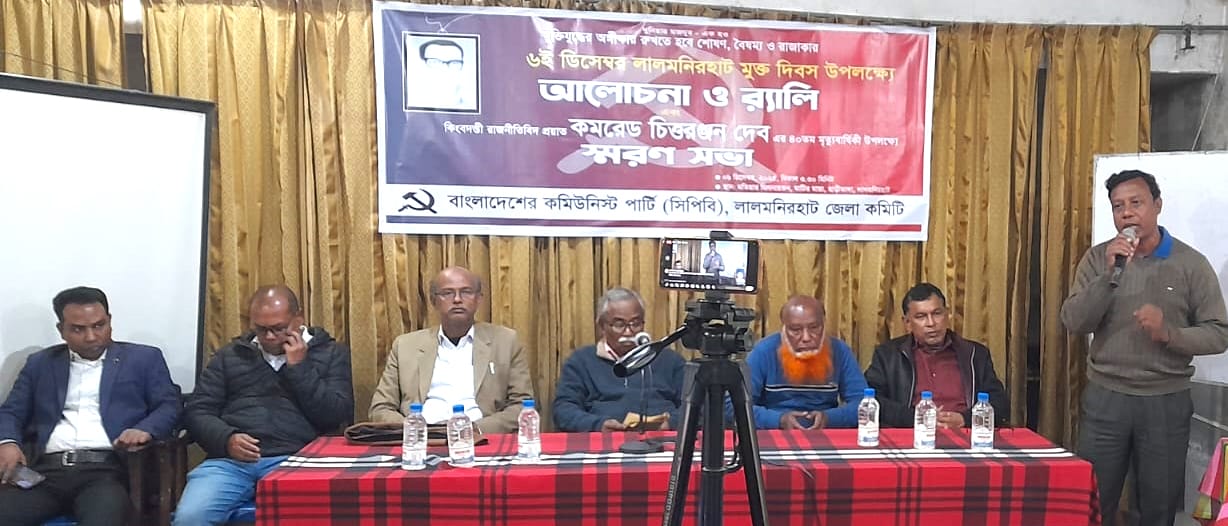 বাংলাদেশের কমিউনিস্ট পার্টি লালমনিরহাট জেলা কমিটির সভাপতি অ্যাড. ময়জুল ইসলাম ময়েজ-এঁর সভাপতিত্বে বাংলাদেশের কমিউনিস্ট পার্টি লালমনিরহাট জেলা কমিটির সহ-সম্পাদক নিরঞ্জন রায়-এঁর সঞ্চালনায় বক্তব্য রাখেন বাংলাদেশের কমিউনিস্ট পার্টি লালমনিরহাট জেলা কমিটির সাধারণ সম্পাদক অ্যাড. মধুসূদন রায় মধু, সদস্য অ্যাড. রফিকুল ইসলাম অপু, যুব নেতা নবীন্দ্র নাথ প্রমুখ। এ সময় বাংলাদেশের কমিউনিস্ট পার্টি লালমনিরহাট জেলা কমিটির অন্যান্য সদস্যবৃন্দ উপস্থিত ছিলেন।