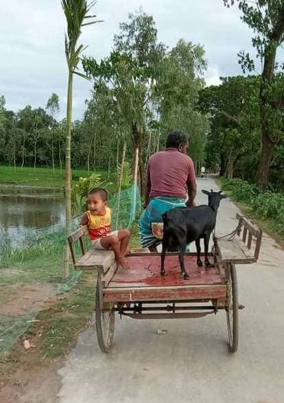 হেলাল হোসেন কবির: বেশ কয়েকদিন ধরে চলছে বন্যা ঘরে খাবার নেই। তাই শেষ সম্বল পোষা ছাগটিকে বিক্রি করার জন্য বাজারে নিয়ে যাচ্ছেন। সাথে নিয়েছেন প্রিয় ছেলেকে। বাবা ভ্যান চালাচ্ছেন আর পিছনে ভ্যানে বসে আছেন ছোট সন্তানটি। চারিদিকে তাকিয়ে থাকেন মায়াবি চোখে৷ মাঝে মাঝে দুষ্টমি করে। তার পাশে দাঁড়িয়ে নীরব অনুভূতি প্রকাশ করে যাচ্ছেন ছাগলটি। যেন কত মায়া তার। চালক কিছু দূর যায় আর পিছনে ফিরে তাকায়। এক পলক দেখে নেয় ছেলে ও পোষা ছাগলকে। একাই কি যেন বির বির করে কথা বলে আবার সামনে তাকায়। আজ বিকালে চলার পথে দেখা গেলো এমন দৃশ্য। লালমনিরহাট সদর উপজেলার মোগলহাট ইউনিয়নের বাজারীটারী গ্রামের এক কৃষক চলতি বন্যায় সংসারে অভাব দেখা দেওয়ায় তার বাড়ির বউয়ের পোষা ছাগলটি বাজারে বিক্রির উদ্দেশ্য নিয়ে যান। তার পুরো নাম জানতে চাইলে বলে, ভাই নাম দিয়ে কি হবে করোনা থেকে এখন পর্যন্ত কয়েকবার তালিকা হইছে কিছুই পাইনি। বন্যার কারনে কর্ম নাই সংসার চালাতে বেশ কষ্ট আর কত দিন। এই ভাবে চলতে থাকে মোগলহাট বাজারের দিকে।