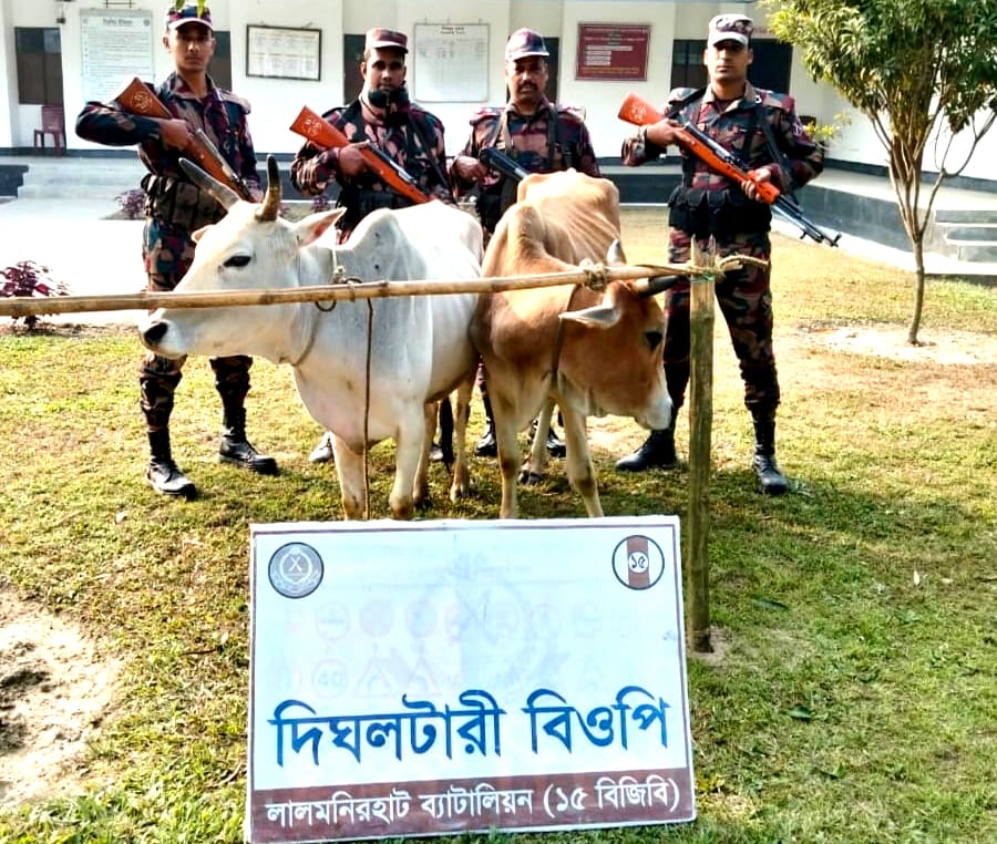 বিশ্বস্ত গোয়েন্দা সূত্রে বিজিবি জানতে পারে যে, চোরাকারবারীরা সীমান্ত দিয়ে গরু পাচার করবে। উক্ত তথ্যানুযায়ী, শুক্রবার (২৬ ডিসেম্বর) বিকাল আনুমানিক ১টা ৩০মিনিটে দিঘলটারী বিওপি’র আওতাধীন লালমনিরহাট জেলার আদিতমারী থানার নামাটারী নামক স্থানে বিজিবি’র টহলদল বিশেষ অভিযান পরিচালনার সময় ভারতীয় সীমান্ত দিক থেকে গরুসহ কয়েকজন চোরাকারবারী বাংলাদেশে প্রবেশের চেষ্টা করলে বিজিবি টহলদল তাদের চ্যালেঞ্জ করে। এ সময় চোরাকারবারীরা গরু ফেলে ভারতের দিকে পালিয়ে যায়। ঘটনাস্থল থেকে ২টি ভারতীয় গরু জব্দ করা হয়।