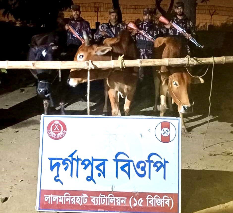 বিশ্বস্ত গোয়েন্দা সূত্রে বিজিবি জানতে পারে যে, চোরাকারবারীরা সীমান্ত দিয়ে গরু পাচার করবে। উক্ত তথ্যানুযায়ী, মঙ্গলবার (৩০ ডিসেম্বর) বিকাল ৫টা ৩০মিনিটে দুর্গাপুর বিওপির আওতাধীন লালমনিরহাট জেলার আদিতমারী থানার চওড়া বাজার নামক স্থানে বিজিবি’র টহলদল বিশেষ চেকপোস্ট স্থাপন করে অভিযান পরিচালনার সময় সন্দেহজনক ব্যক্তিদেরকে গরুসহ আসতে দেখে টহলদল উক্ত গরুর কাগজপত্র দেখাতে বললে তারা প্রয়োজনীয় কাগজপত্র দেখাতে ব্যর্থ হয়। এছাড়াও উক্ত গরু চোরাচালান এর মাধ্যমে অবৈধভাবে ভারত থেকে আনা হয়েছে বলে প্রমানিত হয়। পরবর্তীতে উল্লেখিত ৩টি গরু জব্দ করা হয়।