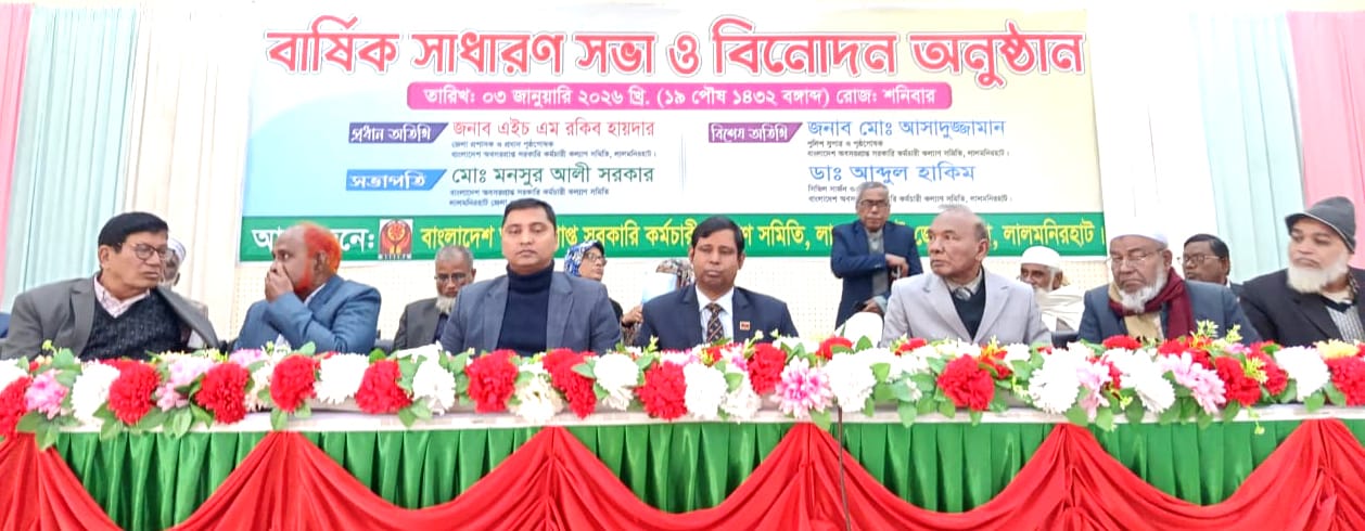 শনিবার (৩ জানুয়ারি) সকাল ১১টায় লালমনিরহাট জেলা পরিষদ অডিটরিয়াম কাম কমিউনিটি সেন্টার মিলনায়তনে বাংলাদেশ অবসরপ্রাপ্ত সরকারি কর্মচারী কল্যাণ সমিতি লালমনিরহাট জেলা শাখার আয়োজন এ বর্ণাঢ্য র্যালি ও আলোচনা সভা অনুষ্ঠিত হয়।