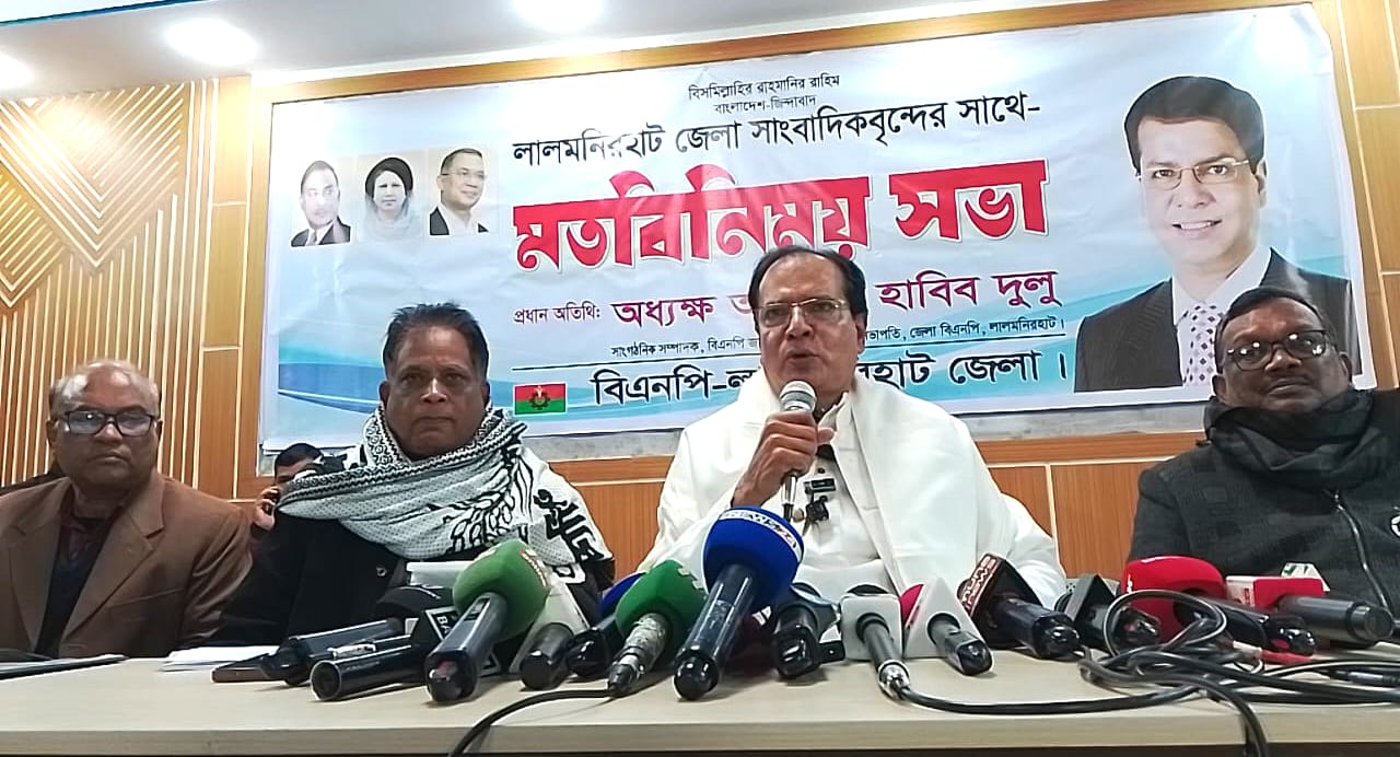 সোমবার (৫ জানুয়ারি) সকাল ১১টায় লালমনিরহাট জেলা শহরের মিশন মোড়স্থ হামার বাড়িতে লালমনিরহাট জেলা বিএনপির আয়োজনে লালমনিরহাট জেলা সাংবাদিকবৃন্দের সাথে- মতবিনিময় সভায় প্রধান অতিথির বক্তব্যে তিনি এ কথা বলেন।